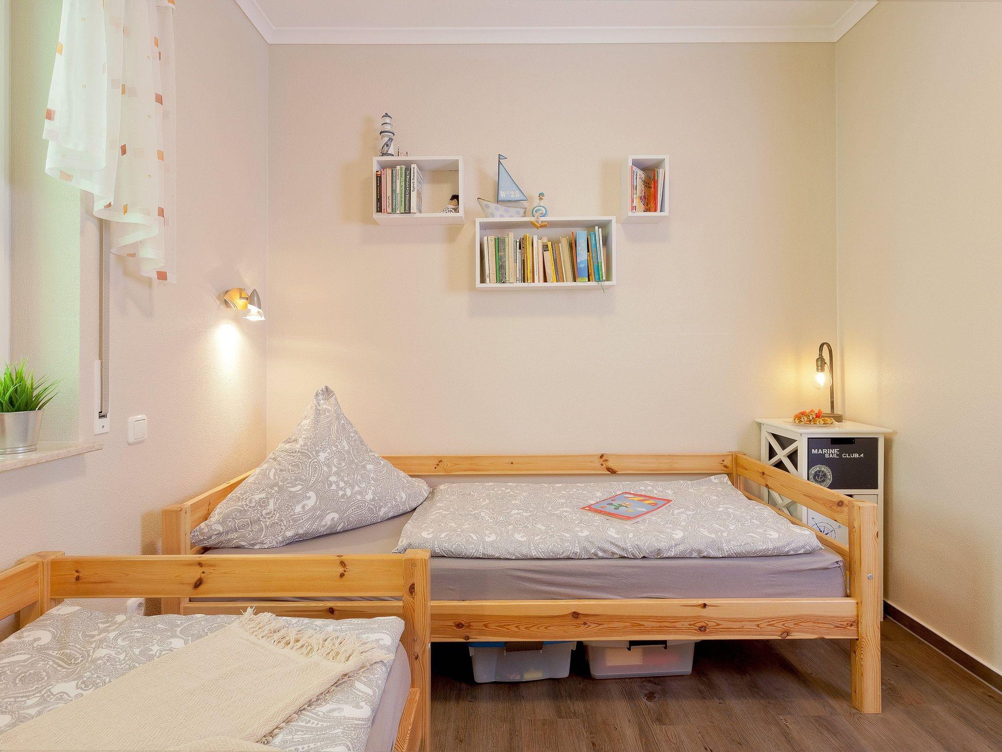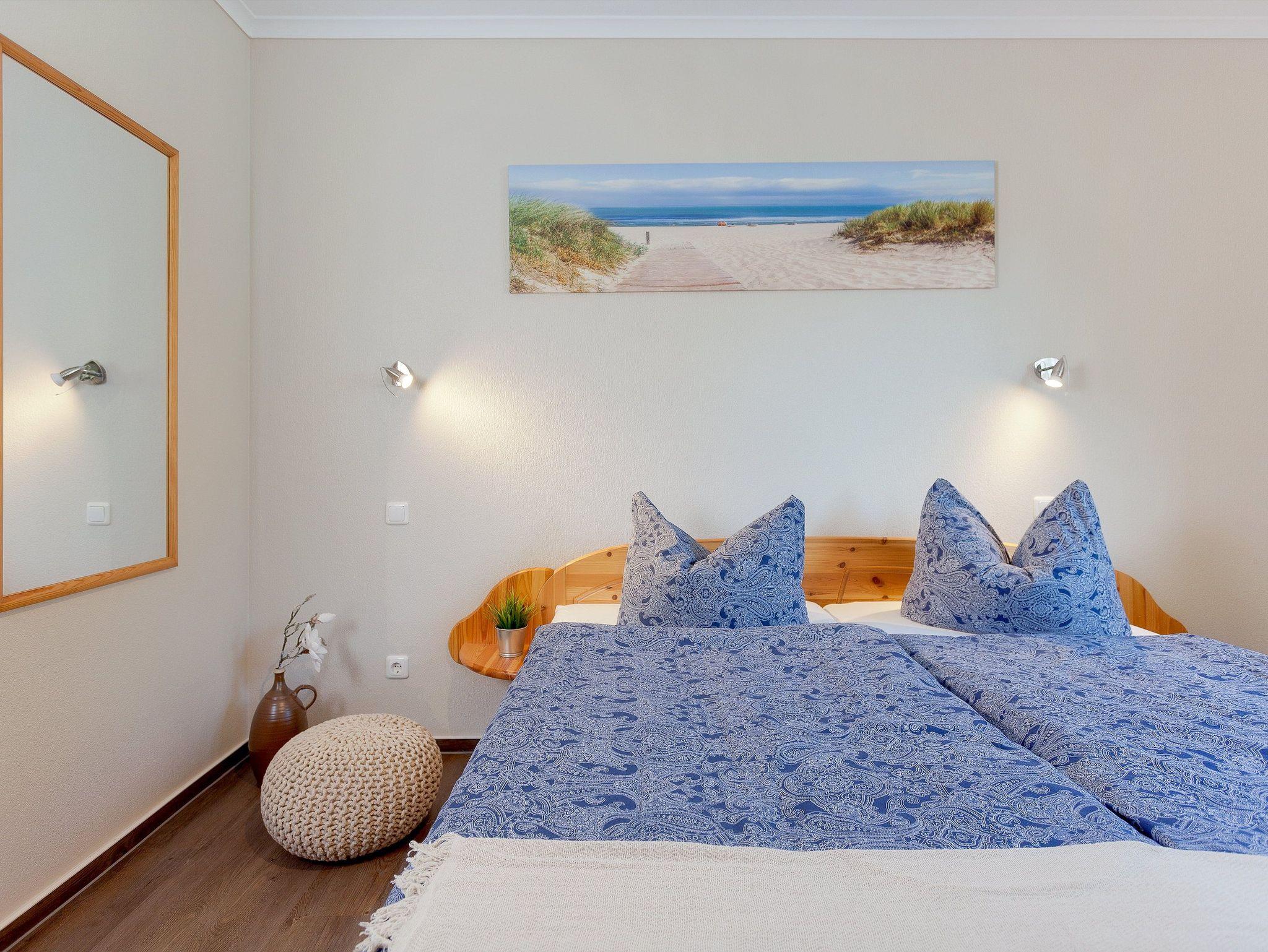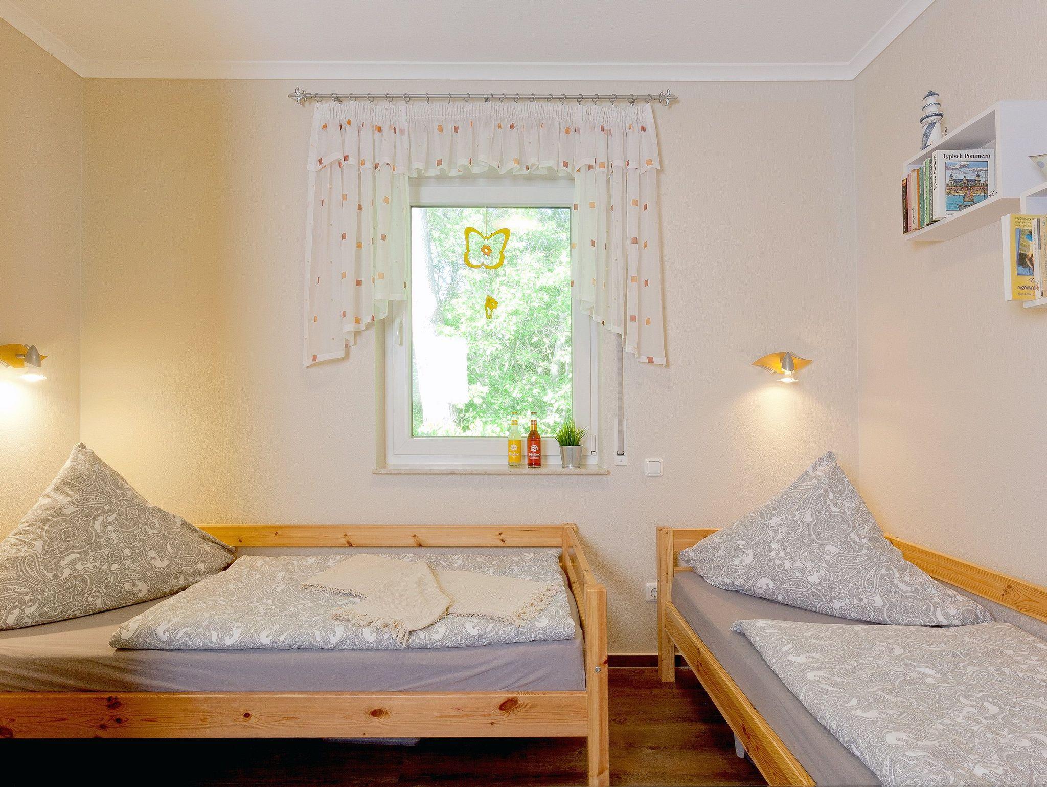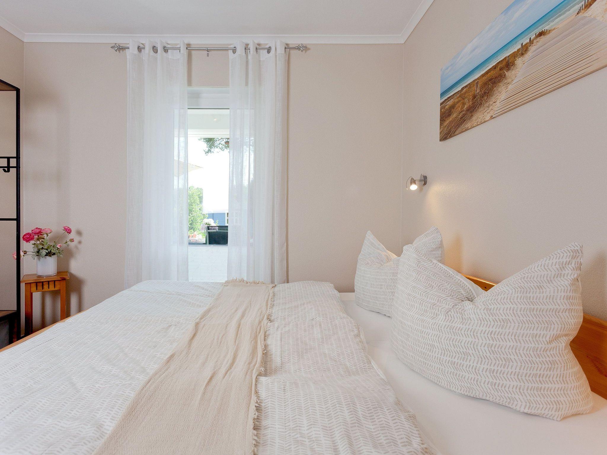 Insgesamt verfügt das Ferienhaus über drei Schlafzimmer. Während zwei der Zimmer Sie mit einem bequemen Doppelbett (je 160 x 200cm / zwei getrennte Matratzen) zur Nachtruhe einladen, erwartet Sie das dritte Schlafzimmer mit zwei komfortablen Einzelbetten (je 80 x 200cm). Damit Sie Ihre wohlverdiente Urlaubszeit bereits am Anreisetag in vollen Zügen genießen können, haben wir das Bett für Sie und das für Ihre lieben Mitreisenden bereits bezogen und ein Duschtuch sowie ein kleines Handtuch bereitgelegt. Dank der Außenjalousien, welche sich rund ums Haus befinden, können Sie auch zur Sommerzeit in aller Ruhe ausschlafen.