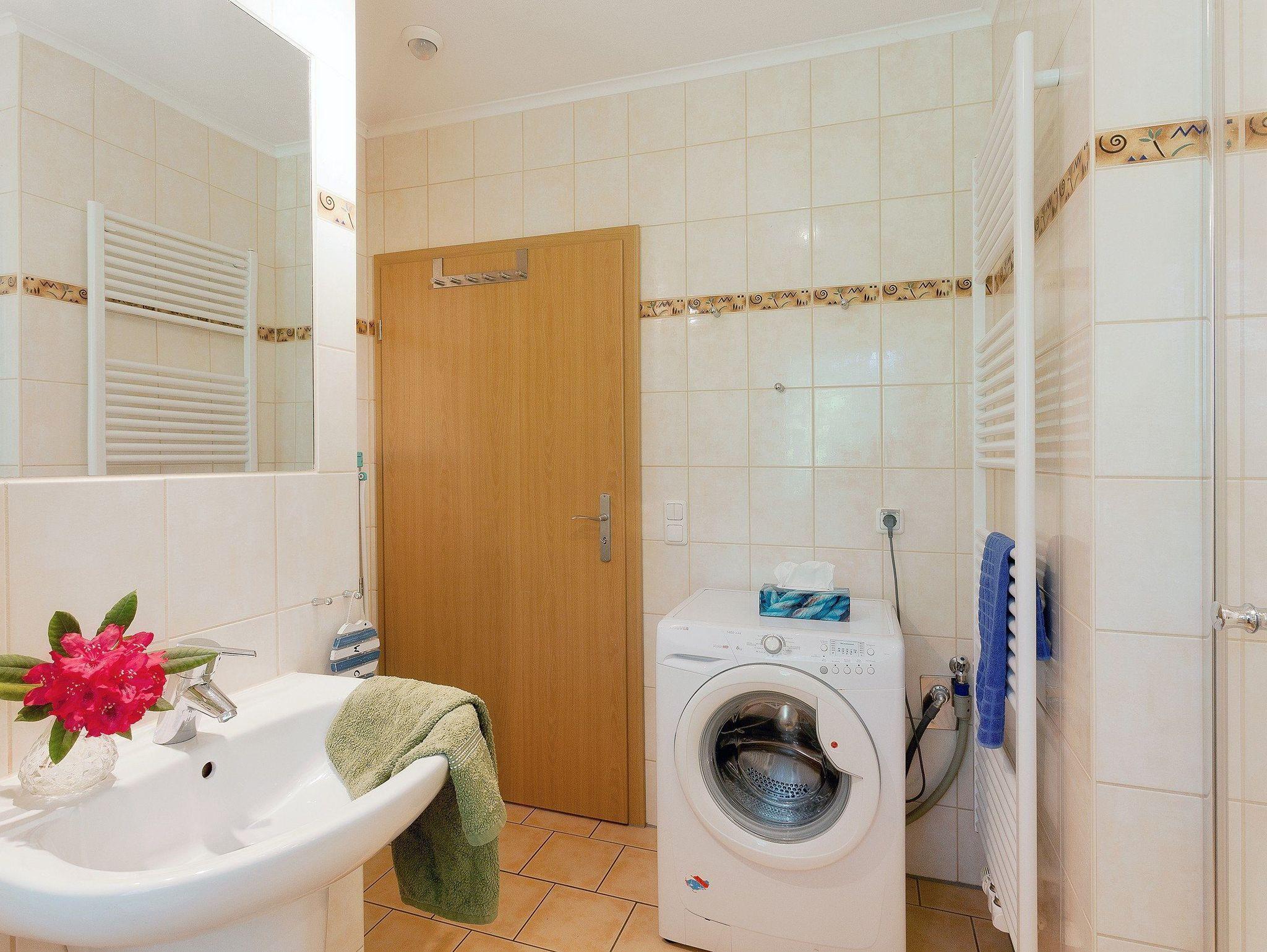 Die beiden Badezimmer sind jeweils mit Dusche, WC und einem Haartrockner ausgestattet. In einem der Bäder steht Ihnen zusätzlich eine Waschmaschine zur Verfügung. Bitte beachten Sie, dass die auf den Fotos abgebildeten zwei Hocker nicht zur festen Ausstattung gehören. Zwei Parkplätze direkt am Haus und ein WLAN-Zugang stehen kostenfrei mit zur Verfügung und runden den Urlaubskomfort ab.