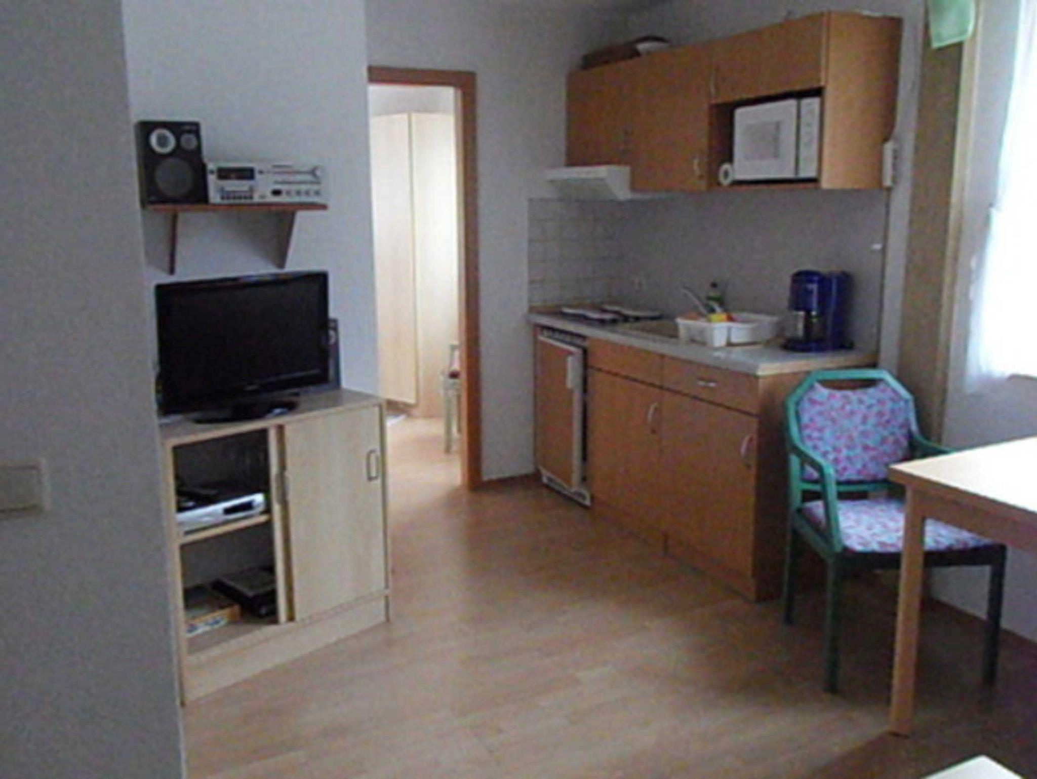 Ausstattung: Kombinierte Wohnküche mit Farb-TV,Radio,Couchgarnitur als Aufbettung f.2 Pers.möglich, Fußbodenheizung, Schlafraum mit Doppelbett und Garderobenschrank.Küchenzeile mit Kochgelegenheit,Kühlschrank,Mikrowelle,Kaffeemaschine u. Geschirr. Bettwäsche und Handtücher können mit einem Aufpreis von 10 Euro pro Person ausgeliehen werden. Parkplatz am Haus.