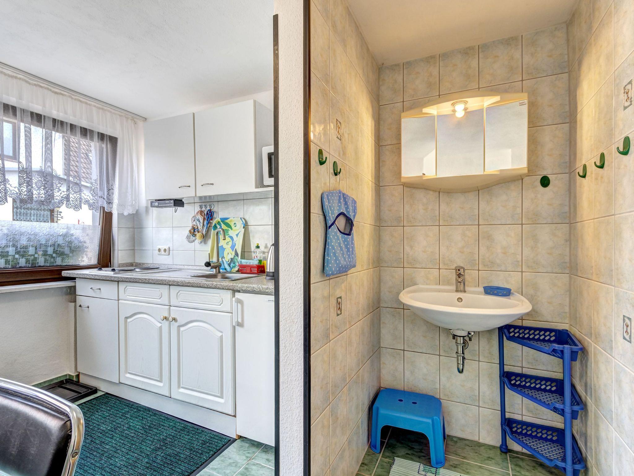 In der separaten Küche erwartet Sie ein Esstisch für 4 Personen sowie eine kleine Küchenzeile, die mit einem Kochfeld, Kühlschrank mit Frostfach, Mikrowelle und Toaster bestens ausgestattet ist. Hier können Sie nach Herzenslust Ihre Lieblingsgerichte zubereiten. Der morgendliche Kaffee oder Tee ist dank Kaffeemaschine und Wasserkocher im Handumdrehen zubereitet - der perfekte Start in den Tag!