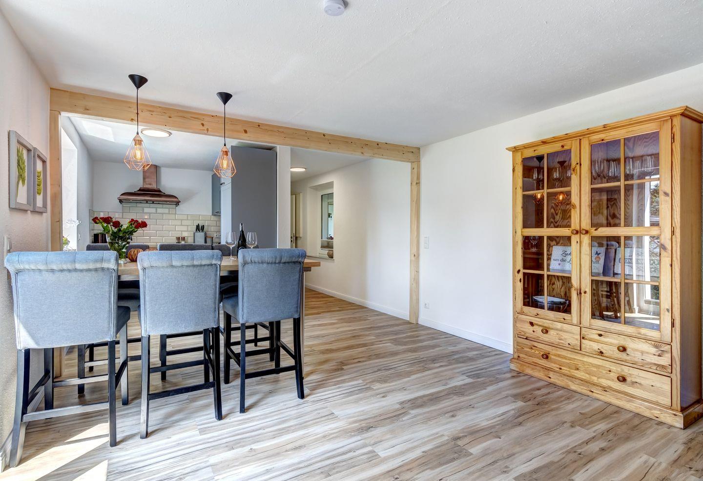 Starten Sie Ihren Tag auf der überdachten Terrasse im Eingangsbereich, wo Sie morgens Ihr Frühstück an der frischen Luft genießen können. Oder lassen Sie den Tag bei einem Glas Wein hier ausklingen und erleben Sie die Ruhe und Schönheit der Umgebung. Der gemütliche Wintergarten bietet zudem einen wunderschönen Blick auf den Garten und lädt zum Verweilen ein, egal zu welcher Jahreszeit.