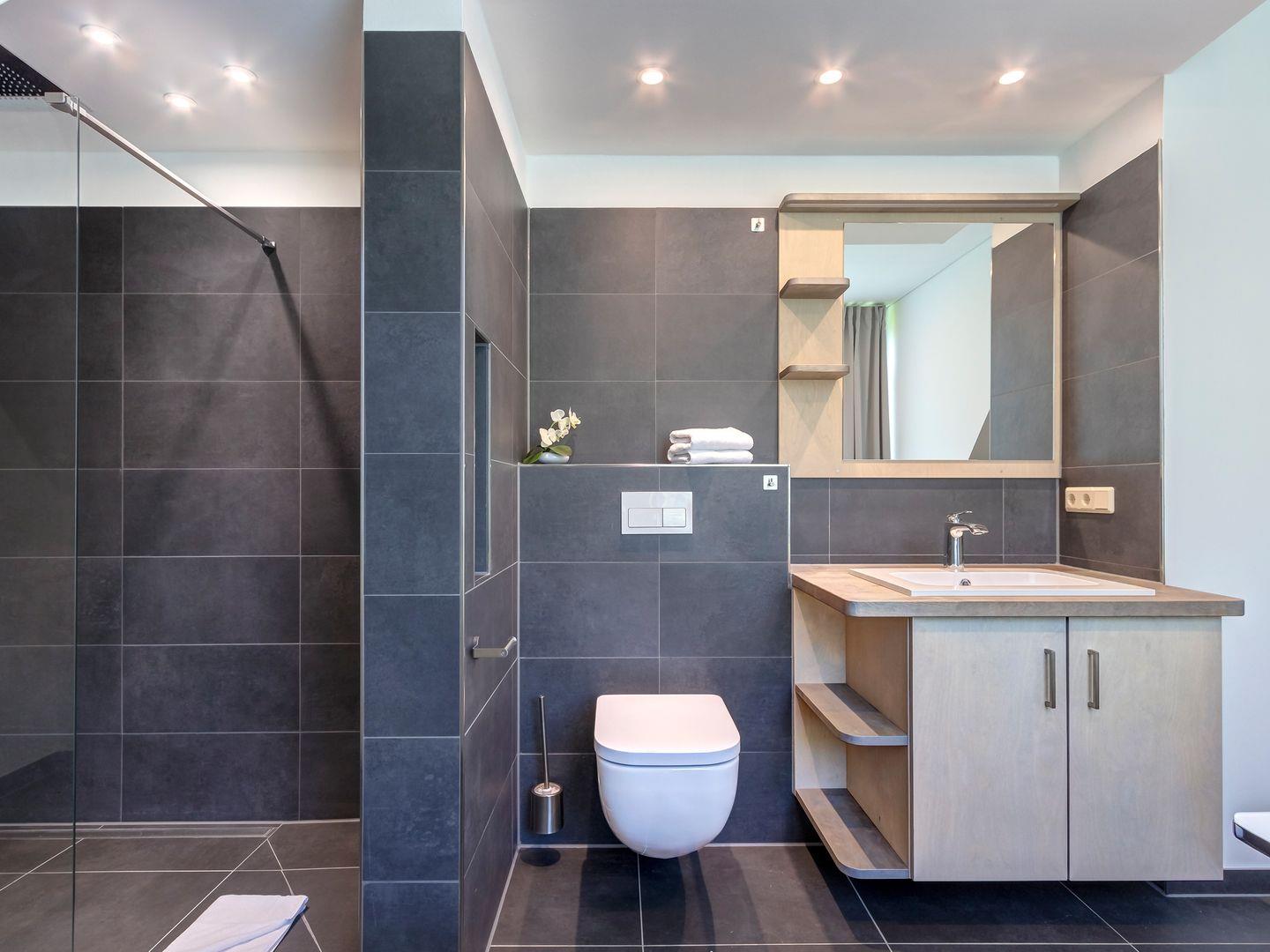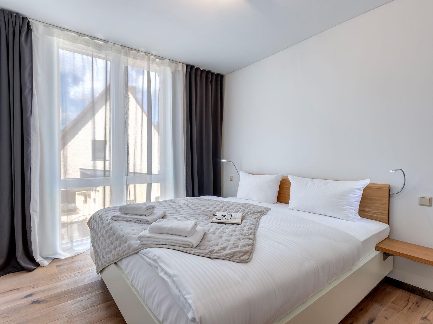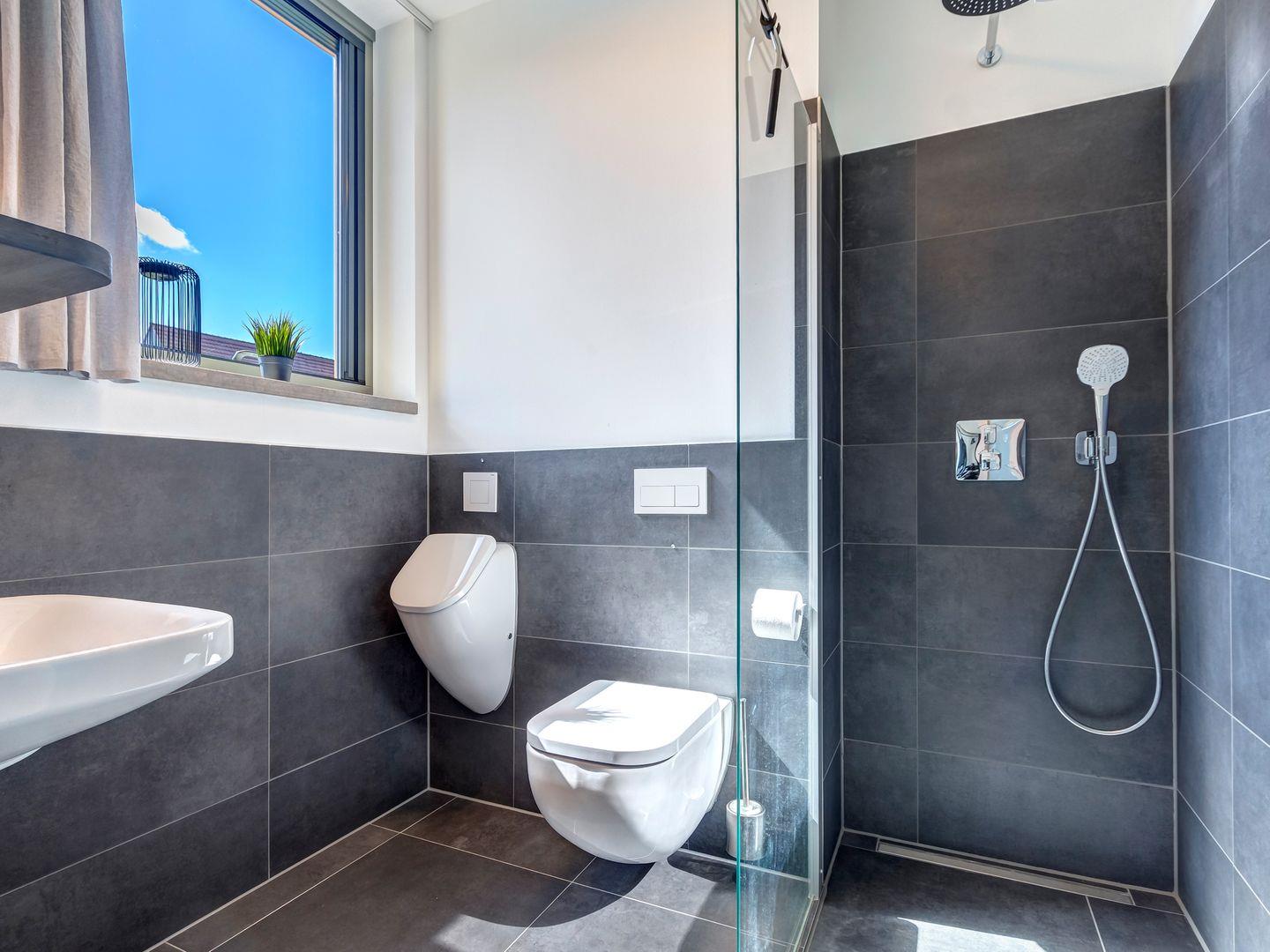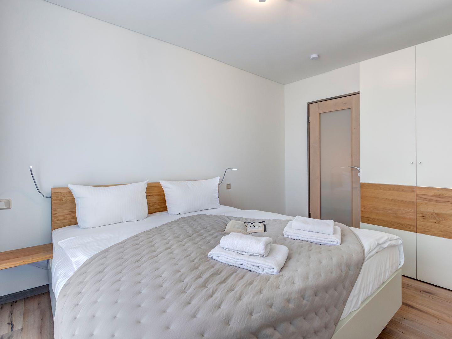 Im 1. Obergeschoss stehen Ihnen drei hochwertig eingerichtete Schlafzimmer mit jeweils einem Doppelbett zur Verfügung. Das große, lichtdurchflutete Erkerschlafzimmer mit seiner Fensterfront ist dabei besonders hervorzuheben. Zwei der Schlafzimmer sind zudem mit einem eigenen TV ausgestattet. Das "Familienbad" im 1. Obergeschoss bietet eine freistehende Badewanne und eine ebenerdige begehbare Dusche für entspannte Momente.