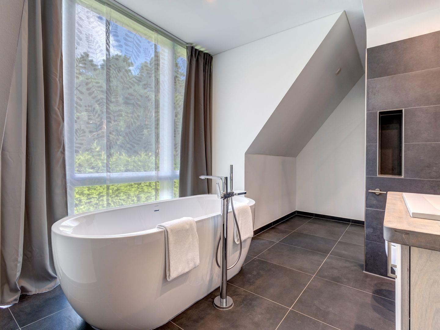 Im 1. Obergeschoss stehen Ihnen drei hochwertig eingerichtete Schlafzimmer mit jeweils einem Doppelbett zur Verfügung. Das große, lichtdurchflutete Erkerschlafzimmer mit seiner Fensterfront ist dabei besonders hervorzuheben. Zwei der Schlafzimmer sind zudem mit einem eigenen TV ausgestattet. Das "Familienbad" im 1. Obergeschoss bietet eine freistehende Badewanne und eine ebenerdige begehbare Dusche für entspannte Momente.
