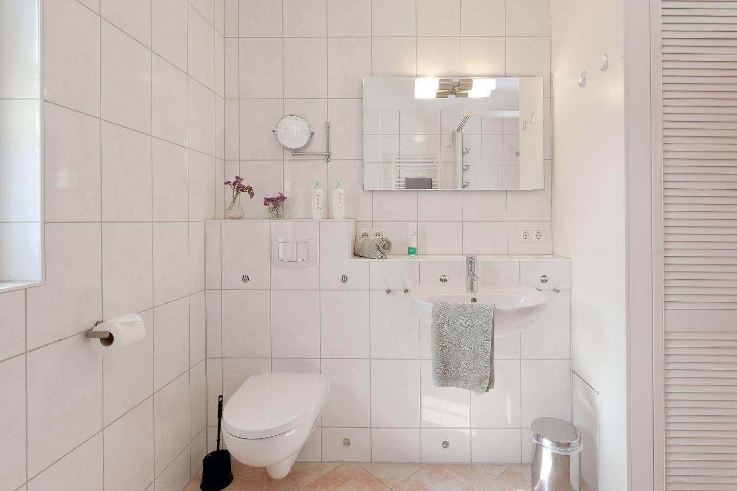 Die zwei Badezimmer des Hauses sind funktional gestaltet und bieten zudem Annehmlichkeiten wie Haartrockner und großzügige Duschen. Ein zusätzliches Gäste-WC sorgt dafür, dass es an nichts fehlt und bietet zusätzlichen Komfort für die ganze Familie.