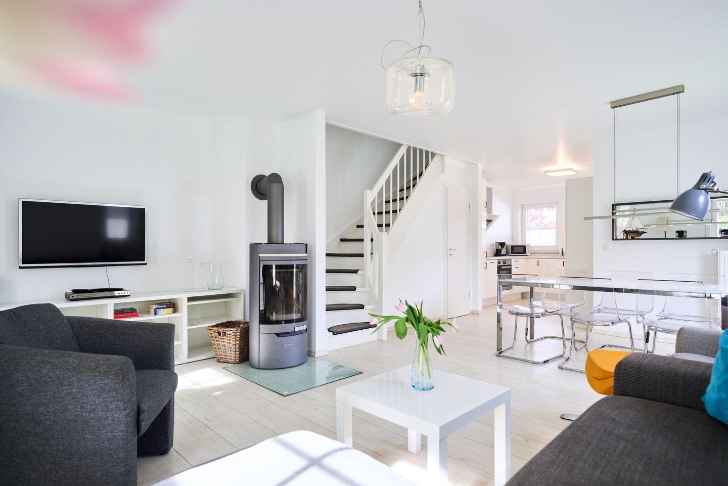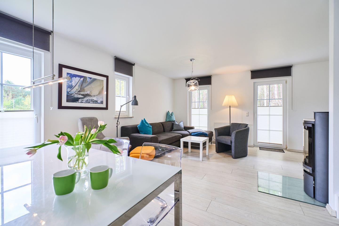 Die offene Küche ist mit allem ausgestattet, was Sie für Ihre kulinarischen Kreationen benötigen. Vom modernen Cerankochfeld bis hin zu Geschirrspüler und Kühlschrank ist alles vorhanden, um Ihnen das Kochen so angenehm wie möglich zu machen. Der Esstisch im Wohnbereich lädt zu gemeinsamen Mahlzeiten ein, während das gemütliche Wohnzimmer mit Kaminofen und Unterhaltungselektronik wie zwei Fernsehern, einer HiFi-Anlage und einem DVD-Player besticht. Hier können Sie nach einem erlebnisreichen Tag wunderbar entspannen und den Abend ausklingen lassen.