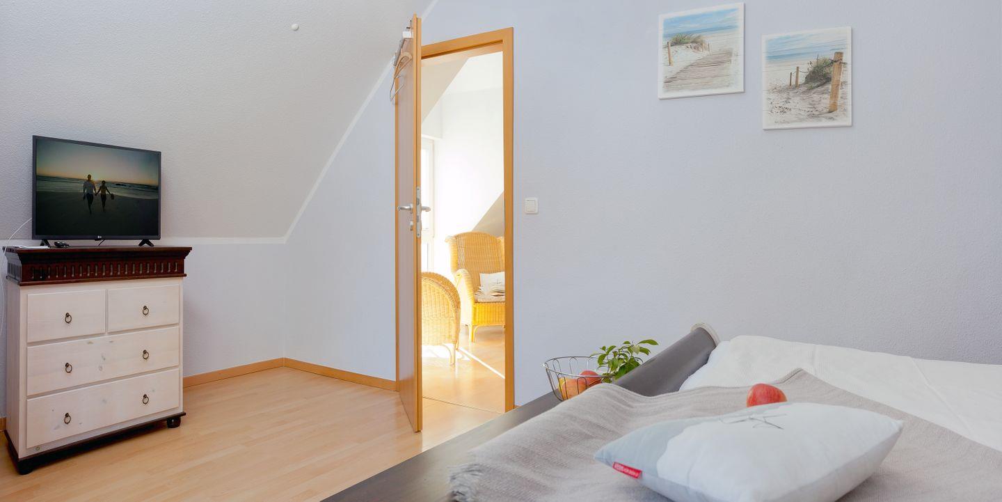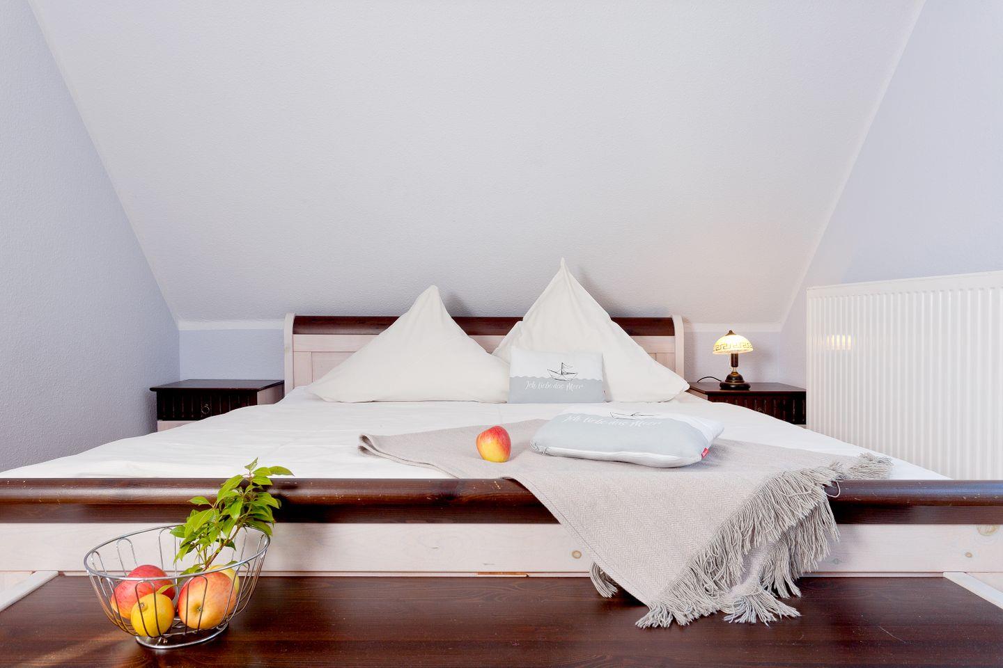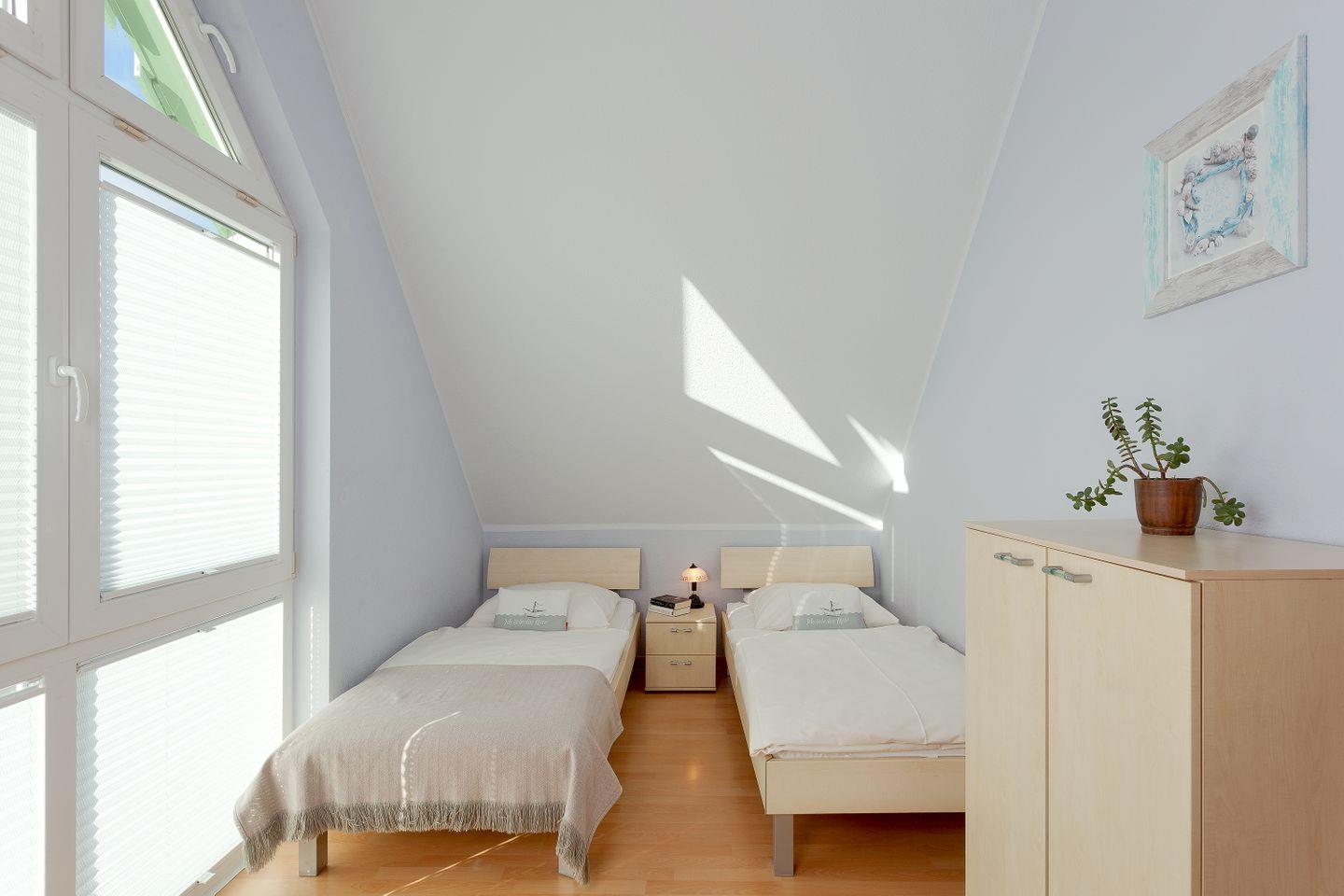 OG:SZ mit Doppelbett und TV, SZ mit 2 Einzelbetten, TV und Kinderbett (Kissen u. Decke), Bad mit Wanne,