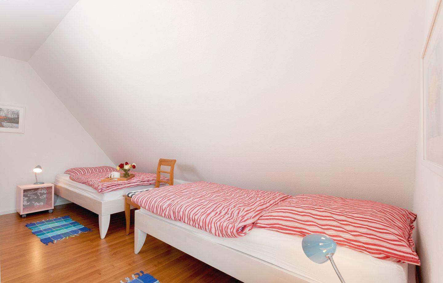 1SZ mit Doppelbett, 1 SZ mit 2 Einzelbetten (auch als Doppelbett stellbar) + Gästebett, WLAN steht kostenlos z.Verfg.