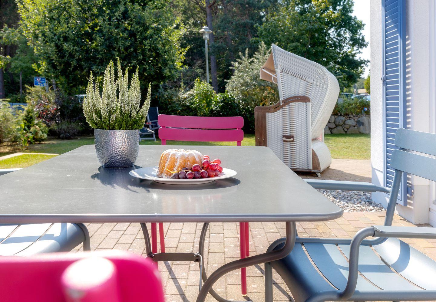 Die offene Küche ist mit allen notwendigen Utensilien ausgestattet, darunter ein Kühlschrank, Herd, Backofen, Geschirrspüler und eine Mikrowelle. Hier können Sie Ihre kulinarischen Fähigkeiten unter Beweis stellen oder einfach einen schnellen Snack zubereiten. Genießen Sie Ihre Mahlzeiten auf der Terrasse, die mit Gartenmöbeln, Strandkorb und einem Grillplatz ausgestattet ist – perfekt für ein geselliges Barbecue im Freien!