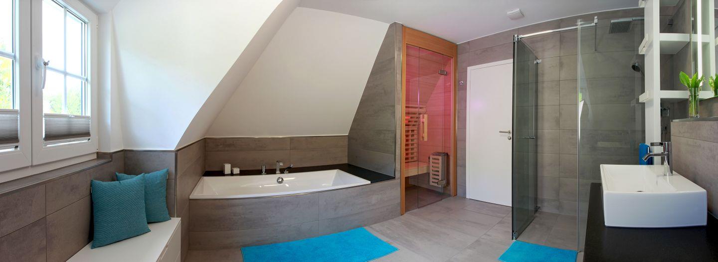2 Bäder (1 x m. Dusche, 1 x m. Dusche u. Wanne + Infrarotsauna), HWR mit Waschtrockner,