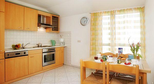 Die Wohnung ist modern und geschmackvoll eingerichtet und bietet Ihnen ein gemütliches Zuhause während Ihres Aufenthalts. Ein offener Wohnbereich mit einer komfortablen Sofaecke lädt zum Entspannen ein. Hier können Sie sich zurücklehnen und Ihre Lieblingssendung auf dem Fernseher oder der HiFi-Anlage genießen. Der angrenzende Essbereich ist ideal für gemeinsame Mahlzeiten, die Sie in der voll ausgestatteten Küche zubereiten können. Diese bietet Ihnen alle notwendigen Utensilien, darunter einen Herd mit 4 Platten, Backofen, Geschirrspüler, Kühlschrank, sowie eine Kaffeemaschine und Toaster, um köstliche Frühstücks- oder Abendessen für Ihre Lieben zu kreieren.