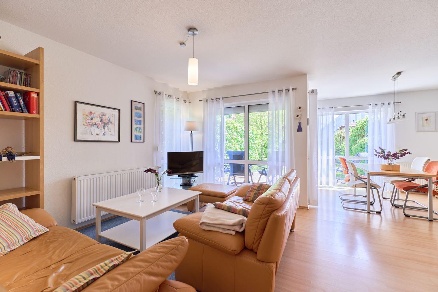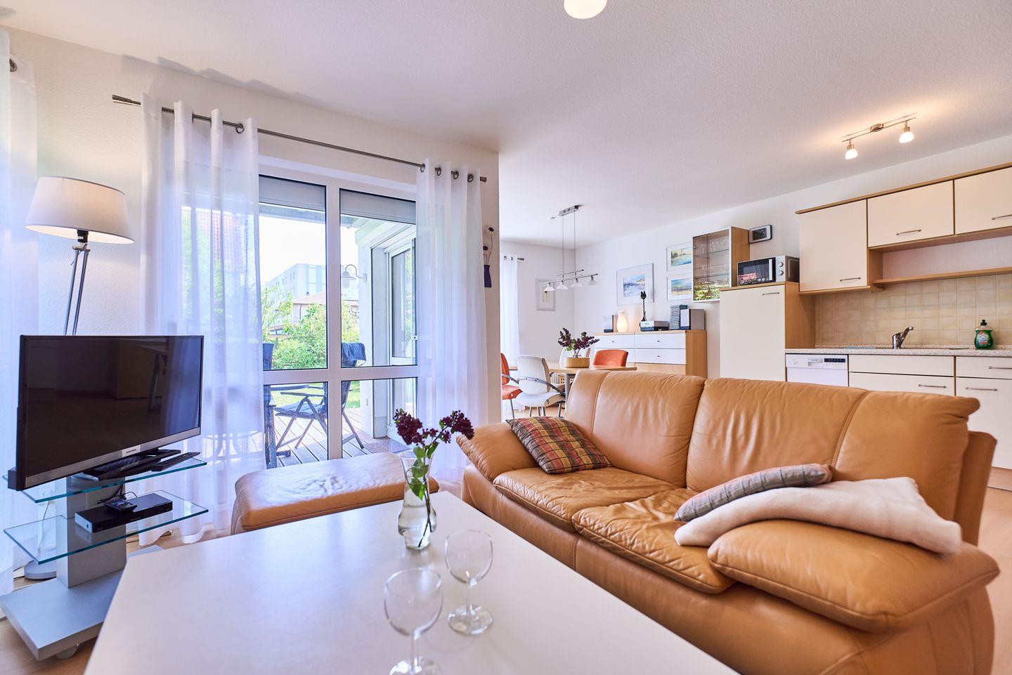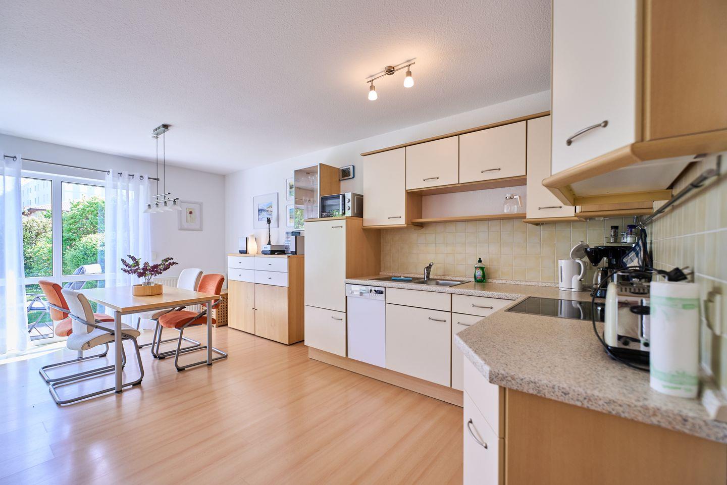 Mit einer Größe von 60 m² und Platz für bis zu vier Personen, ist die Ferienwohnung ideal für Familien oder Paare, die die Schönheit der Ostseeküste erkunden möchten. Die Wohnung ist stilvoll eingerichtet und umfasst zwei gemütliche Schlafzimmer, die mit modernem Laminatboden ausgelegt sind, sowie einen einladenden Wohnbereich mit offener Küche. Der Essbereich ist perfekt für gesellige Abendessen, während das Sofa und die Sofaecke zum Entspannen nach einem erlebnisreichen Tag einladen. Zusätzliche Extras wie Bettwäsche und Handtücher (diese sind NICHT in Ihrer Buchung enthalten),können über unsere Gäste-App dazu gebucht werden.