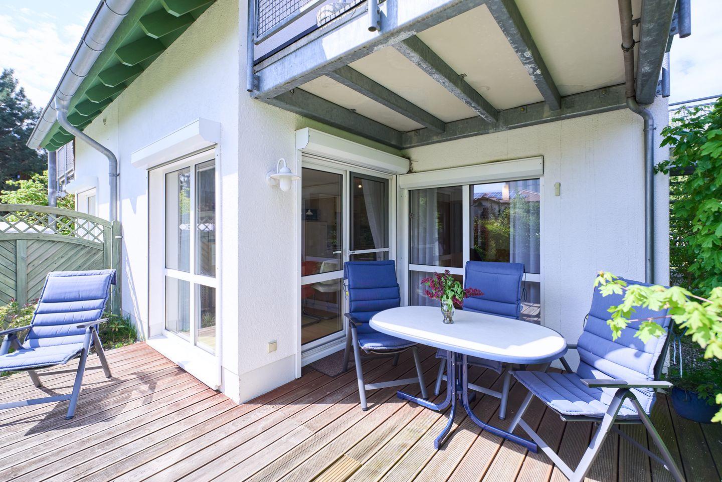 Terrasse mit Strandkorb, PKW-Stellplatz