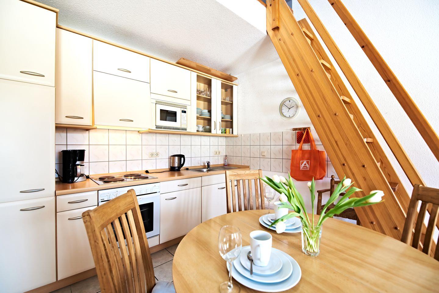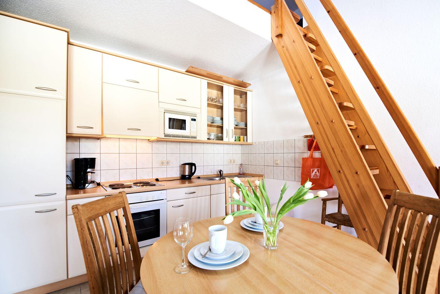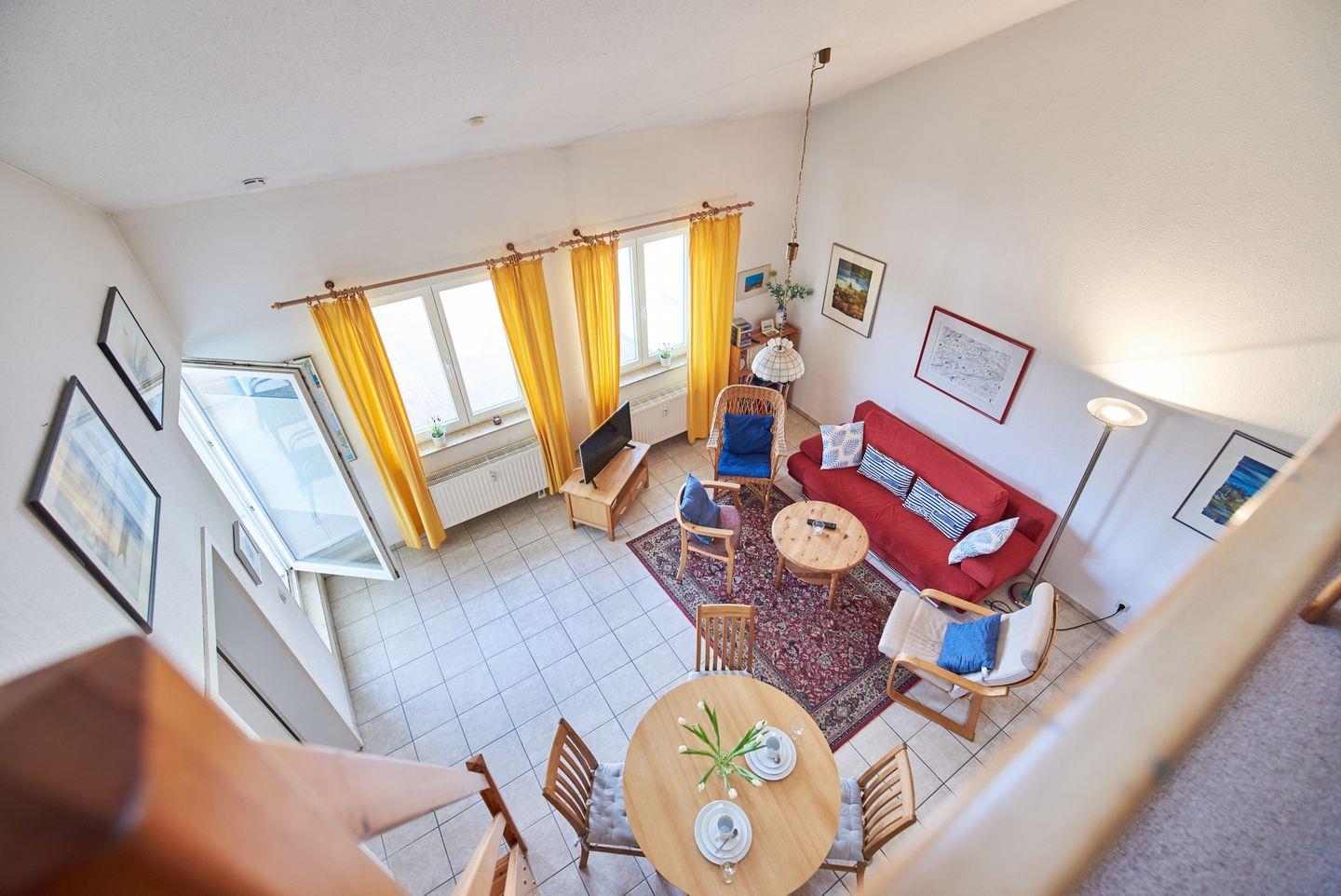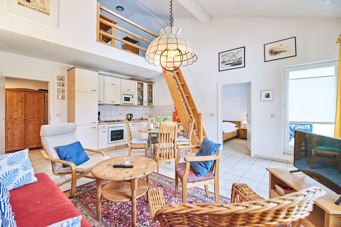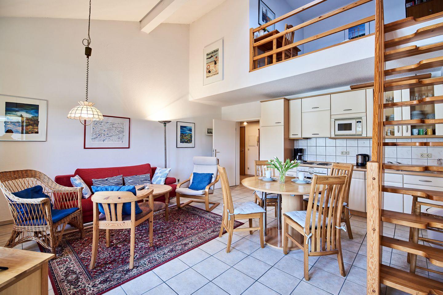 1 Wohnzimmer mit integrierter Küchenzeile und Galerie