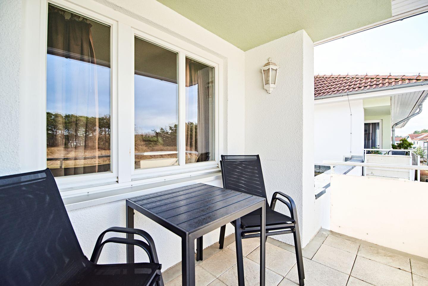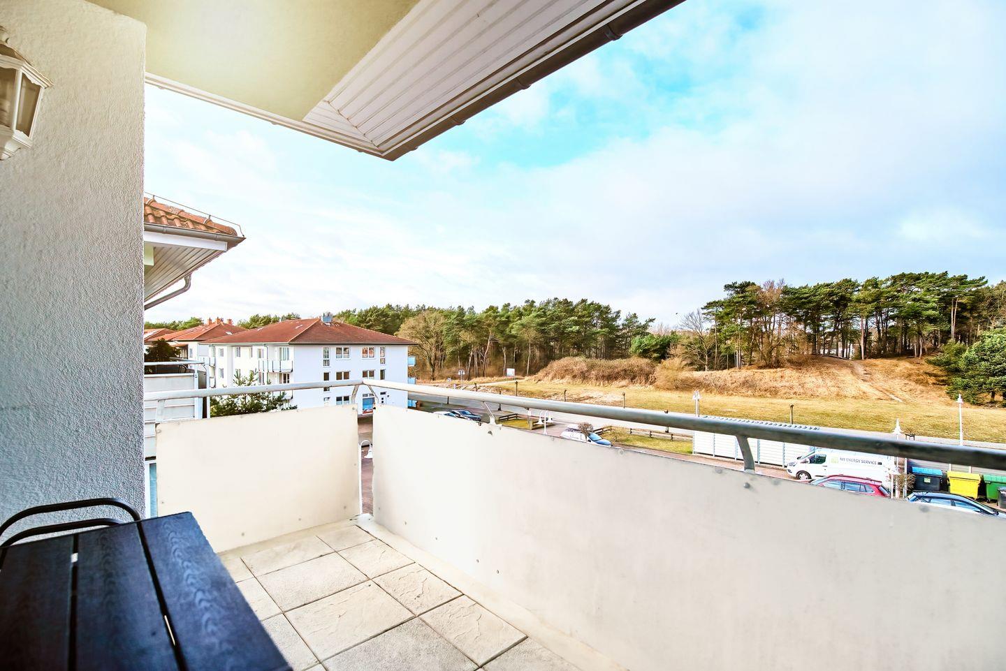 Ein weiteres Highlight ist der große Balkon, der einen idealen Platz zum Entspannen und die frische Ostseeluft bietet. Die Ferienwohnung befindet sich in einer ruhigen, ländlichen Umgebung, die umgeben ist von Wäldern und nur wenige Schritte vom Strand entfernt.