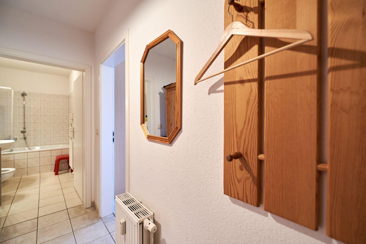 Die Wohnung ist mit einem stilvollen Badezimmer ausgestattet, das eine warme Badewanne sowie ein Waschbecken und WC bietet. Damit Sie sich in der FeWo 21 rundum wohlfühlen können, finden Sie hier auch moderne Annehmlichkeiten wie WLAN, einen TV und zahlreiche Spiele und Bücher für die ganze Familie. Zusätzliche Extras wie Bettwäsche und Handtücher (diese sind NICHT in Ihrer Buchung enthalten),können über unsere Gäste-App dazu gebucht werden.