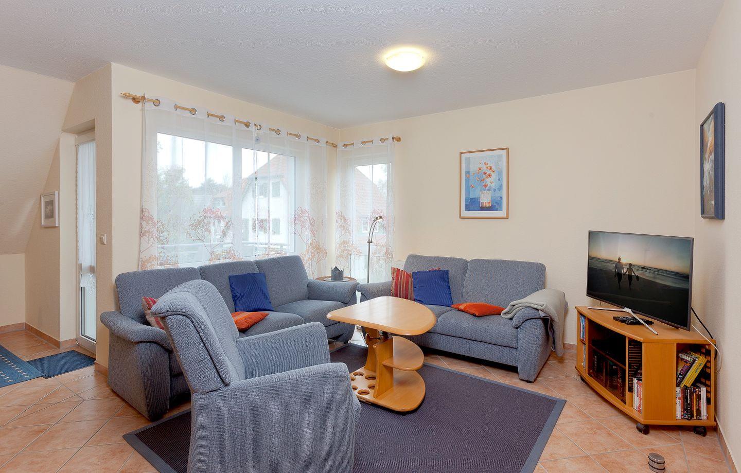 Die Wohnung verfügt über zwei komfortable Schlafzimmer, die hell und einladend gestaltet sind. Hier finden Sie den perfekten Ort, um nach einem aufregenden Tag am Strand zur Ruhe zu kommen. Das Wohnzimmer ist mit bequemen Sofas ausgestattet und lädt dazu ein, gesellige Abende zu verbringen. Hier können Sie sich entspannen, einen Film auf einem der zwei Fernseher ansehen oder sich beim Spielen von Brettspielen vergnügen. Zudem sind ein DVD- und Blu-ray-Player vorhanden, sodass für Unterhaltung gesorgt ist.