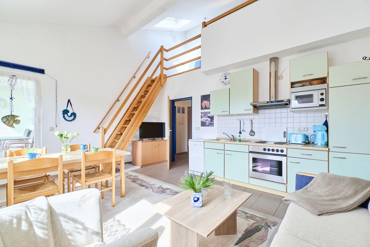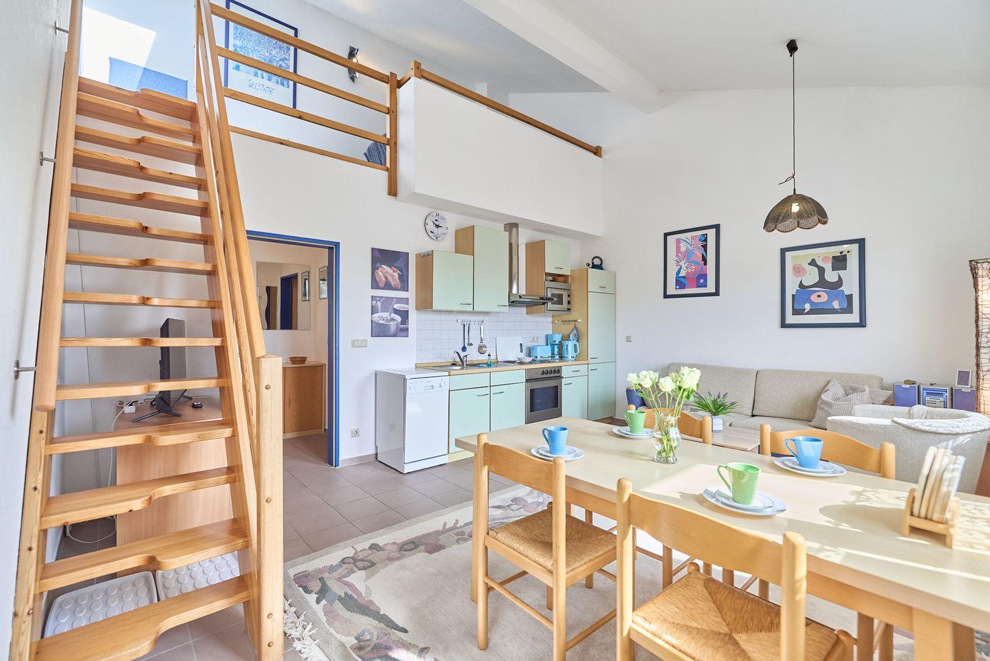 Die Ferienwohnung ist geschmackvoll eingerichtet und bietet alles, was Sie für Ihren Aufenthalt benötigen. Im offenen Wohnbereich finden Sie ein Sofa , die zu gemütlichen Abenden einlädt, sowie einen Esstisch, an dem Sie Ihre Mahlzeiten genießen oder Spieleabende mit Ihren Lieben verbringen können. Die moderne Küche ist voll ausgestattet mit einem Herd, Backofen, Kühlschrank, Geschirrspüler und allen notwendigen Küchenutensilien. Hier können Sie kreative Gerichte zaubern oder sich einfach am Morgen einen frischen Kaffee zubereiten – eine perfekte Ausgangsbasis für einen erlebnisreichen Tag. Zusätzliche Extras wie Bettwäsche und Handtücher (diese sind NICHT in Ihrer Buchung enthalten),können über unsere Gäste-App dazu gebucht werden.