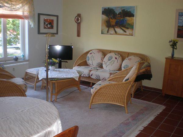Die hellen und freundlich gestalteten Räume sind modern und gemütlich eingerichtet. Das Wohnzimmer ist der Mittelpunkt der Wohnung und lädt mit einem bequemen Sofa, einem Sessel und einem Essbereich zum Verweilen ein. Hier können Sie entspannte Abende mit einem guten Buch oder einem spannenden Spiel verbringen. Ihr Lieblingsfilm oder die neuesten Serie lassen sich auf dem Flat-Screen-TV genießen, der über einen Satellitenanschluss verfügt.