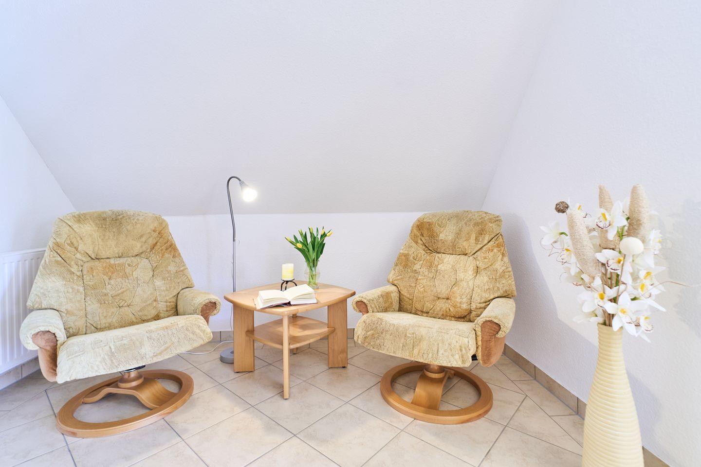 Genießen Sie die schöne Zeit im Freien auf dem Balkon, der mit Gartenmöbeln ausgestattet ist und Ihnen die Möglichkeit bietet, bei einem Glas Wein die frische Ostseeluft zu genießen. Für entspannte Abende stehen Ihnen gleich zwei Fernseher und ein DVD-Player zur Verfügung, sodass Sie sich nach einem aktiven Tag oder einem Strandbesuch zurückziehen und Ihre Lieblingsfilme genießen können.