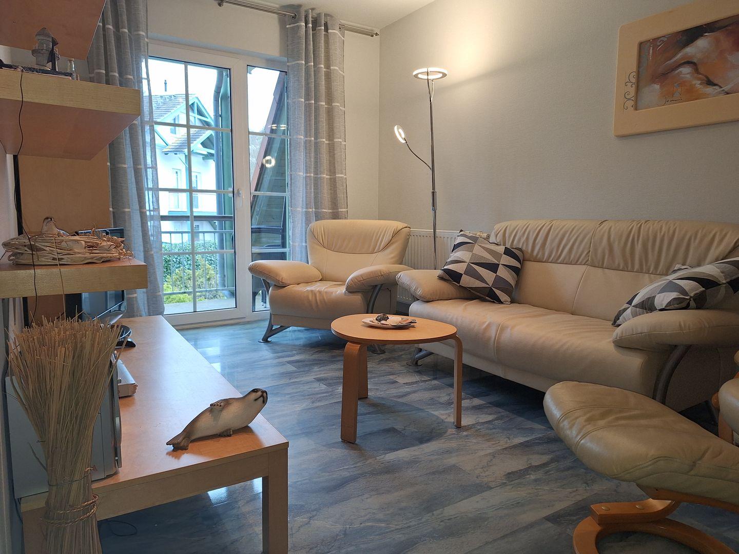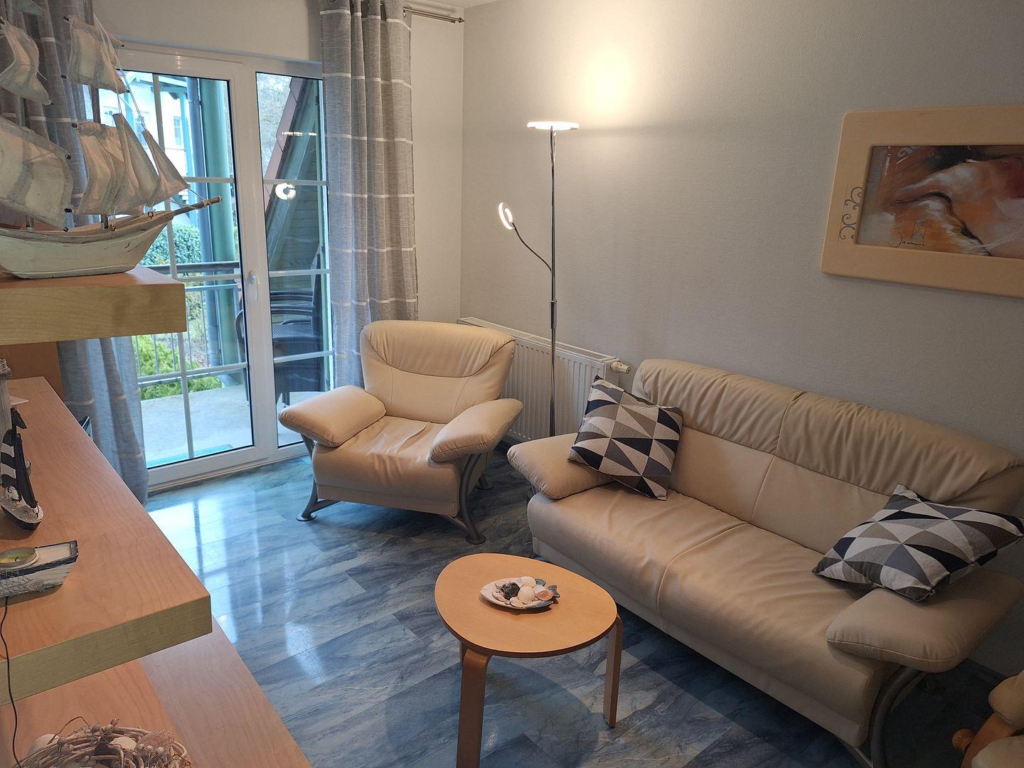 Die Ferienwohnung verfügt über zwei geschmackvoll eingerichtete Schlafzimmer, die mit hochwertigen Laminatböden ausgestattet sind. Hier können Sie nach einem erlebnisreichen Tag am Strand erholsam schlafen und neue Energie tanken. Das bequeme Wohnzimmer ist mit einem Sofa, Sessel und einem Essbereich eingerichtet, der ein geselliges Zusammensein ermöglicht. Eine offene Küche mit modernen Geräten wie einer Spülmaschine, einem Backofen, einem Kühlschrank und einer Mikrowelle macht das Kochen zum Vergnügen. Für unterhaltsame Abende sorgen der DVD-Player, das Radio und eine Auswahl an Spielen und Büchern.