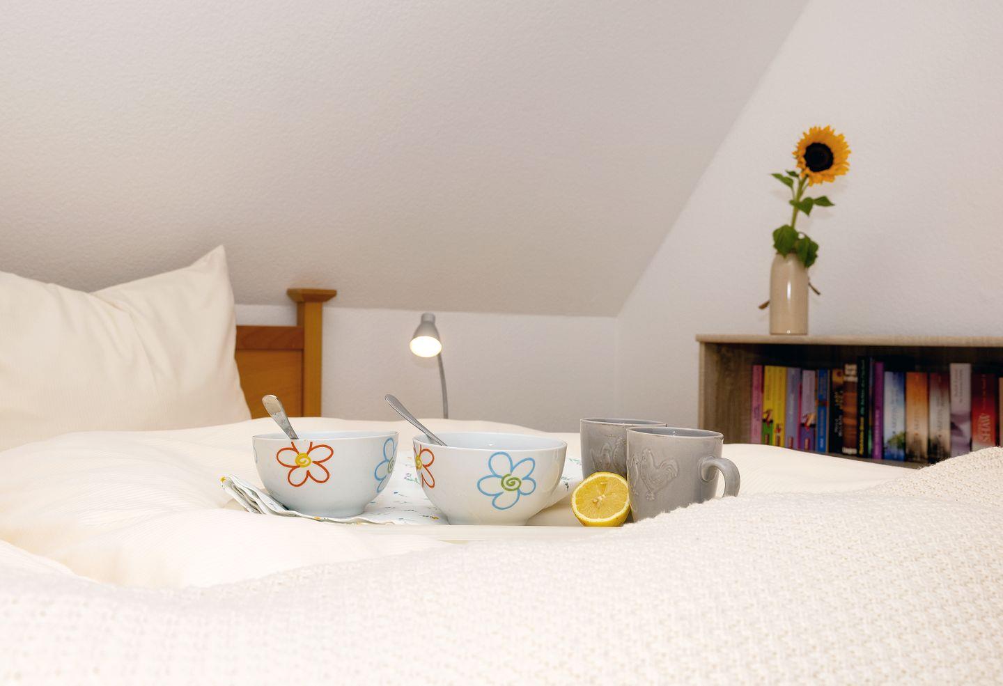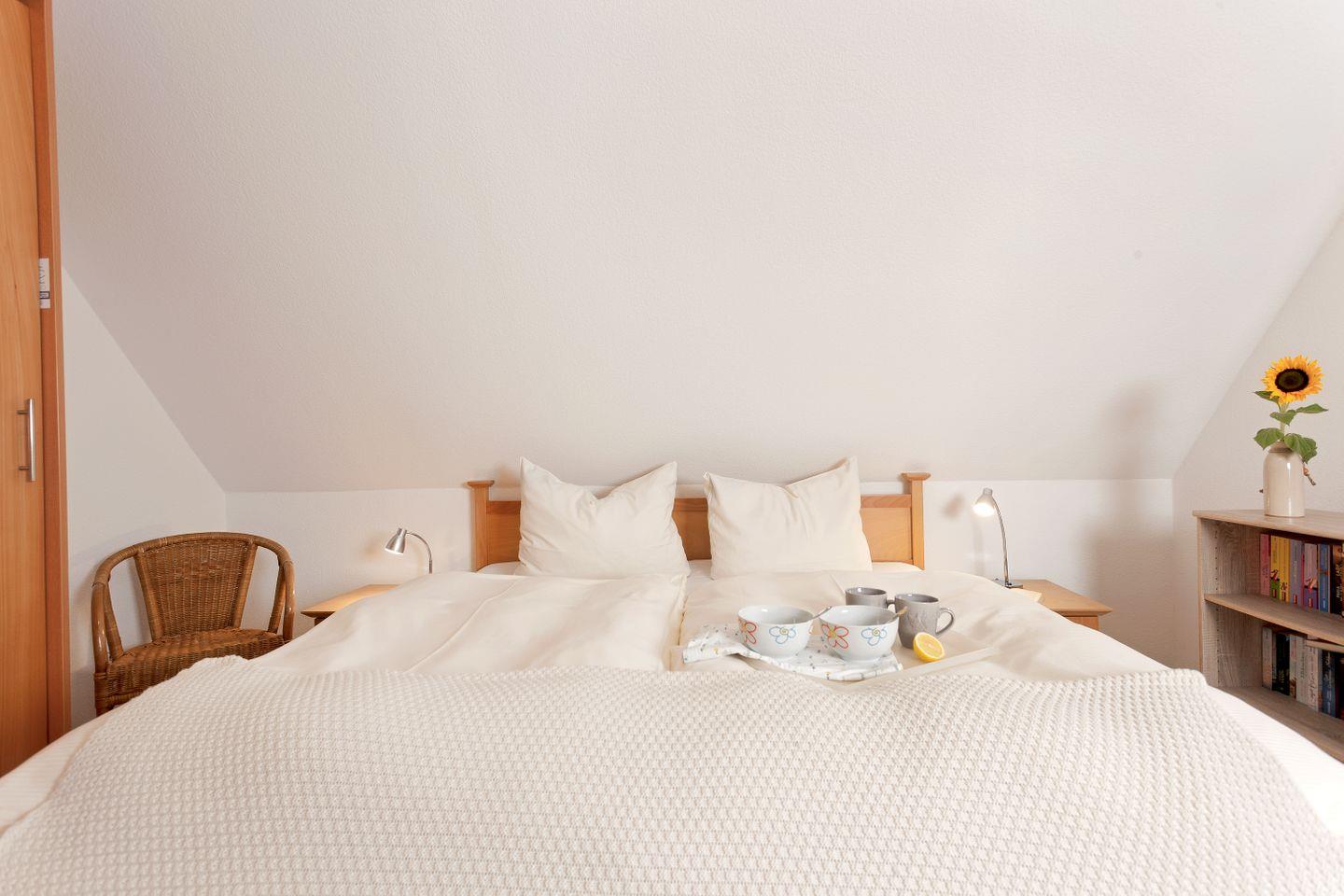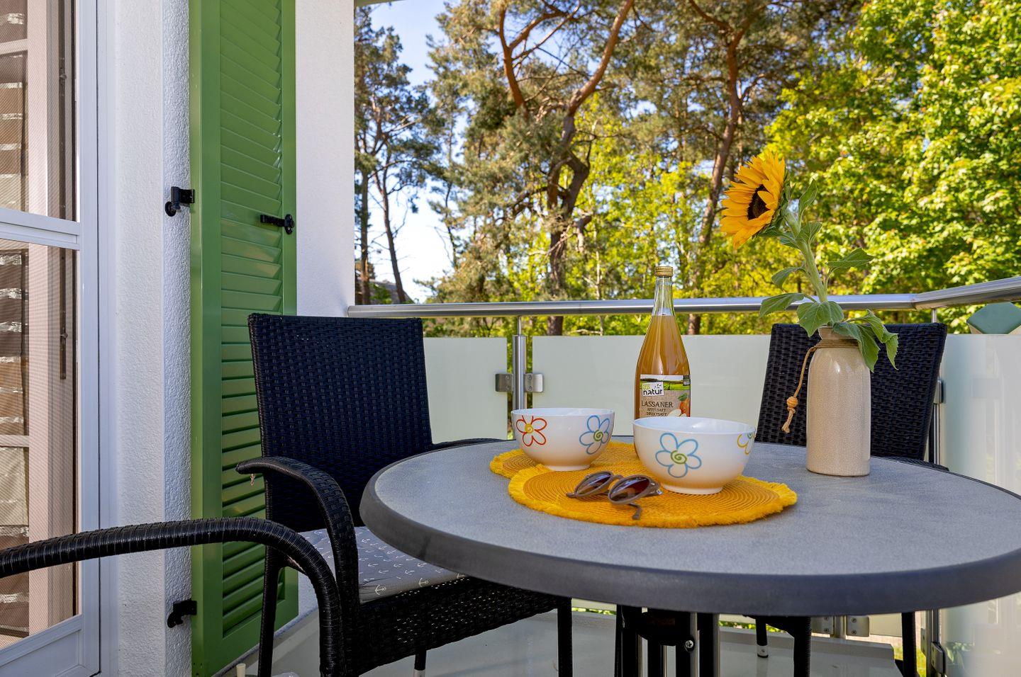 Ein weiteres Highlight der Ferienwohnung ist der Balkon, auf dem Sie Ihre Morgenkaffees oder gemütliche Abende unter freiem Himmel genießen können. Hier erwartet Sie eine Ruhe Oase, in der Sie den Blick ins Grüne schweifen lassen und den Klängen der Natur lauschen können. Mit dem Strandkorb am Strand, der Ihnen kostenfrei zur Verfügung steht, wird Ihr Tag am Meer noch angenehmer.