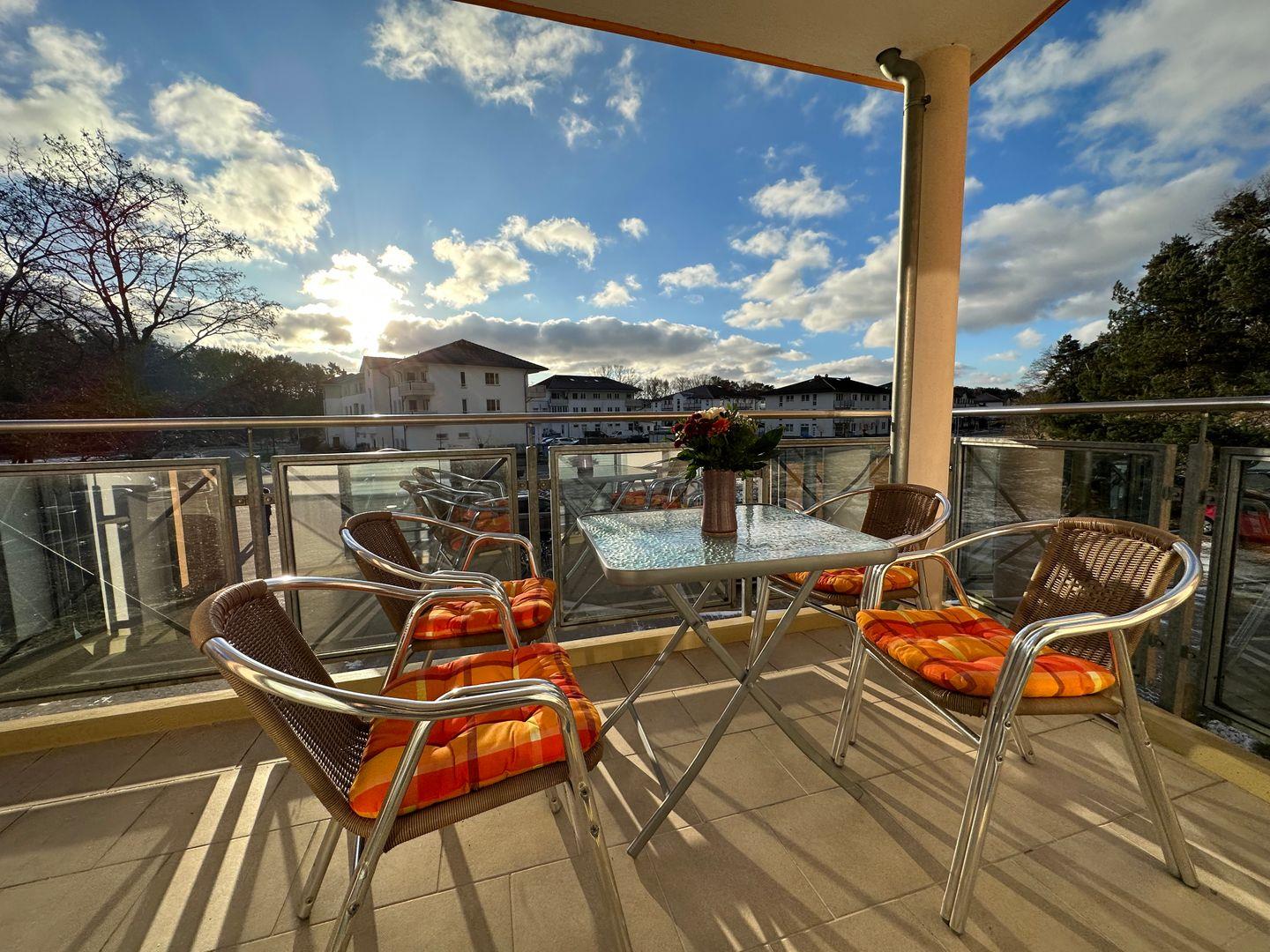 Ein weiteres Highlight dieser Ferienwohnung ist der großzügige Balkon, auf dem Sie die frische Ostseeluft genießen und die Seele baumeln lassen können. Gartenmöbel stehen bereit, um die Aussicht zu genießen oder ein gutes Buch zu lesen. WLAN ist ebenfalls vorhanden, sodass Sie die Verbindung zur Außenwelt behalten oder Ihren Aufenthalt ganz nach Belieben planen können.