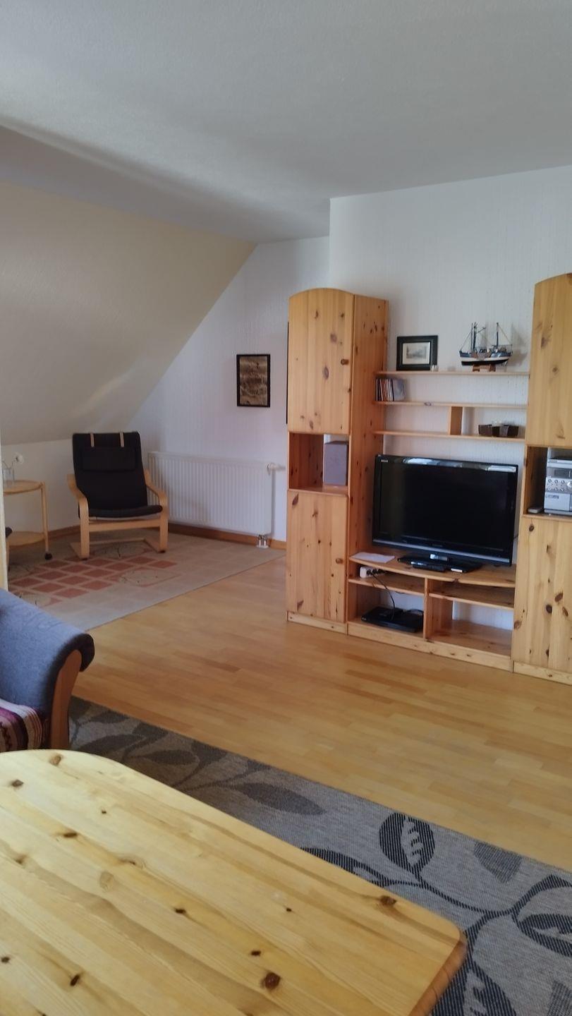 Maisonettewohnung mit Balkon 73 m², Wohnzimmer mit LCD Fernseher, zwei Sofas
