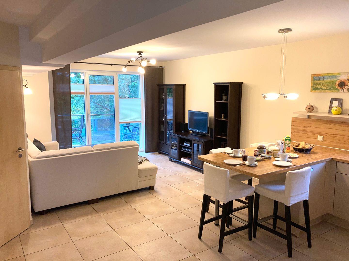 Die geschmackvoll eingerichtete Wohnung verfügt über zwei Schlafzimmer, die mit bequemen Betten ausgestattet sind und zum Entspannen einladen. Das großzügige Wohnzimmer mit offener Küche ist der perfekte Ort, um gemeinsame Zeit zu verbringen. Hier finden Sie eine moderne Ausstattung, einschließlich eines Flatscreen-TVs. eines gemütlichen Sofas und einem Essbereich, an dem Sie gemeinsam essen und Spiele spielen können. Der Anschluss an die offene Küche sorgt dafür, dass Sie beim Kochen nicht von Ihren Freunden oder der Familie getrennt sind. Diese ist mit allem ausgestattet, was Sie brauchen: einem Ceranherd, Backofen, Kühlschrank, Geschirrspüler und sogar einer Kaffeemaschine, um den perfekten Start in den Tag zu ermöglichen!
