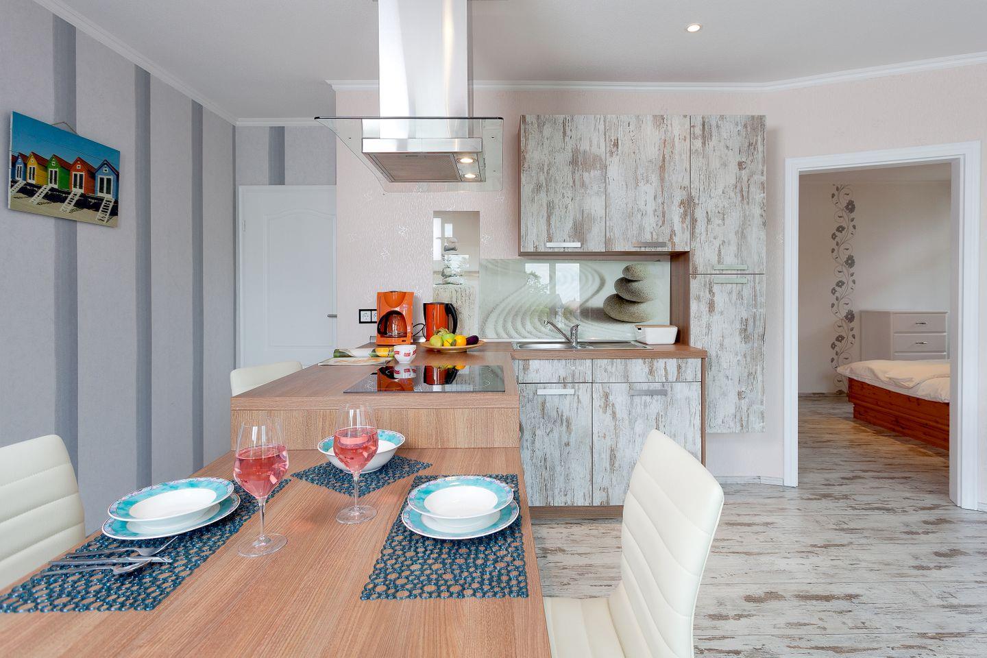 Die offene Küche, die zum Wohnzimmer hin gestaltet ist, ist mit modernen Geräten ausgestattet, darunter ein Cerankochfeld, ein Backofen, eine Geschirrspülmaschine und ein Kühlschrank mit Gefrierfach. Sie haben außerdem Zugang zu weiteren Annehmlichkeiten wie Wasserkocher, Toaster und Kaffeemaschine – ideal für die Zubereitung Ihres Lieblingsfrühstücks, bevor Sie einen Tag voller Erlebnisse an der Küste genießen.