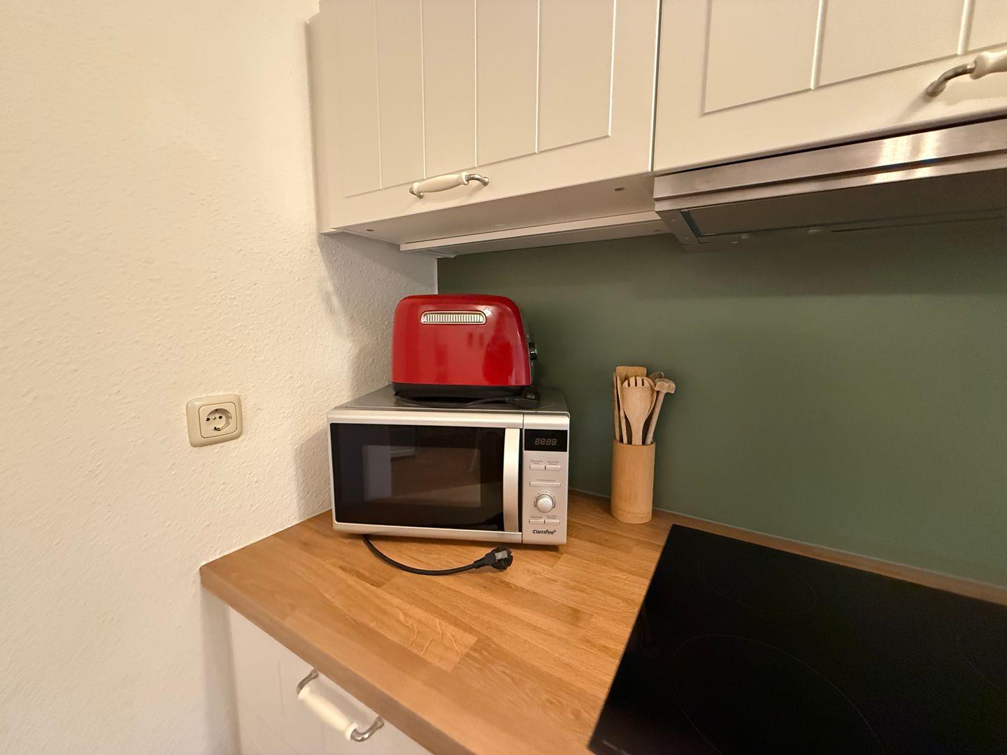 Im Inneren erwartet Sie ein freundlicher Wohnbereich, der mit seiner hellen Gestaltung und den liebevollen Details sofort ein Gefühl von Geborgenheit vermittelt. Die Küche ist vollständig ausgestattet und macht es leicht, regionale Köstlichkeiten zuzubereiten oder gemeinsam zu kochen. Große Fenster lassen viel Licht herein und schaffen eine Verbindung zur Natur, die gleich vor der Haustür beginnt.