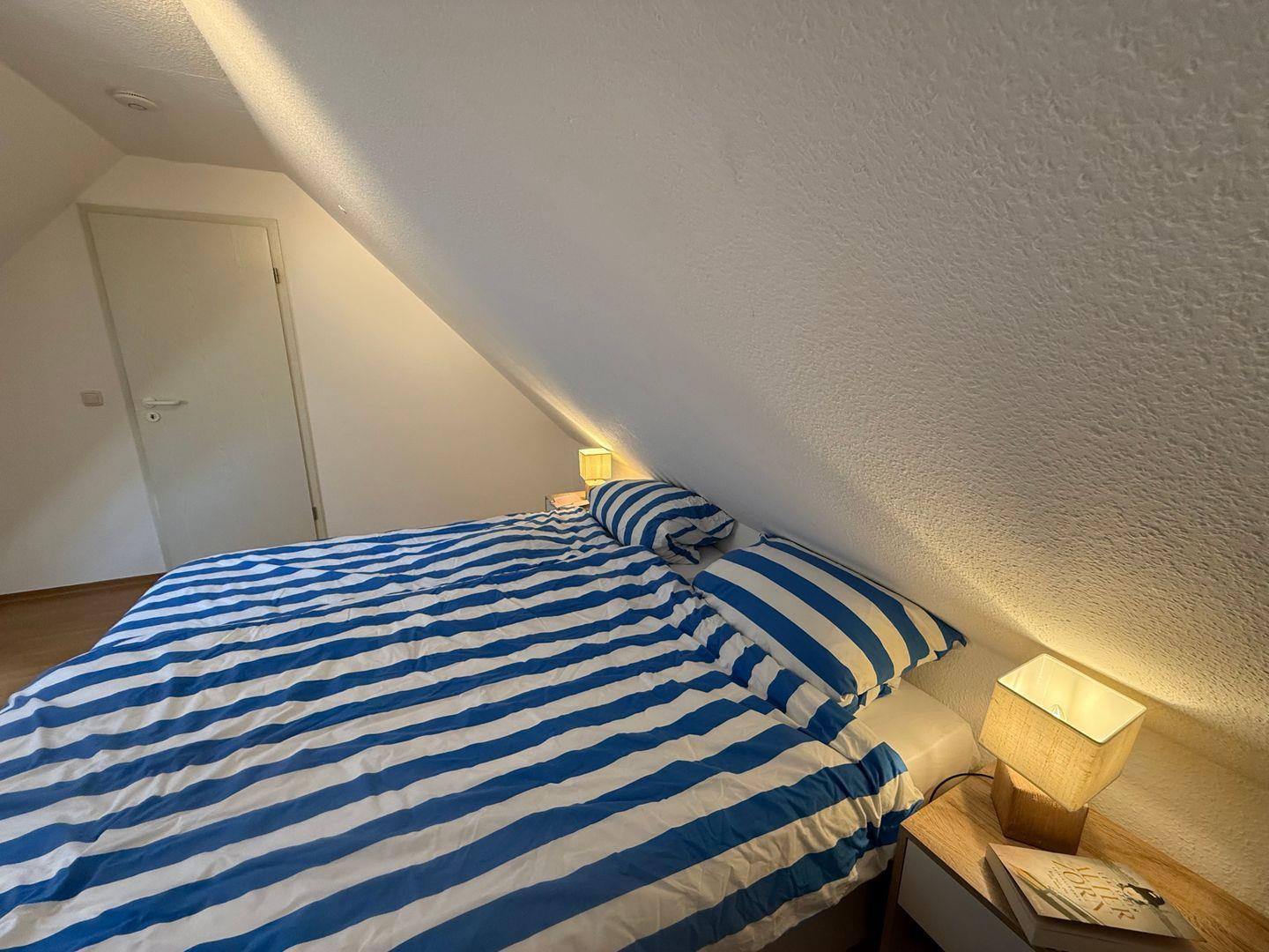 Im Obergeschoss befinden sich zwei separate Schlafzimmer, die sowohl Eltern als auch Kindern Privatsphäre und Rückzugsmöglichkeiten bieten. Ein modernes Bad mit Dusche ergänzt die Ausstattung und sorgt für zusätzlichen Komfort.