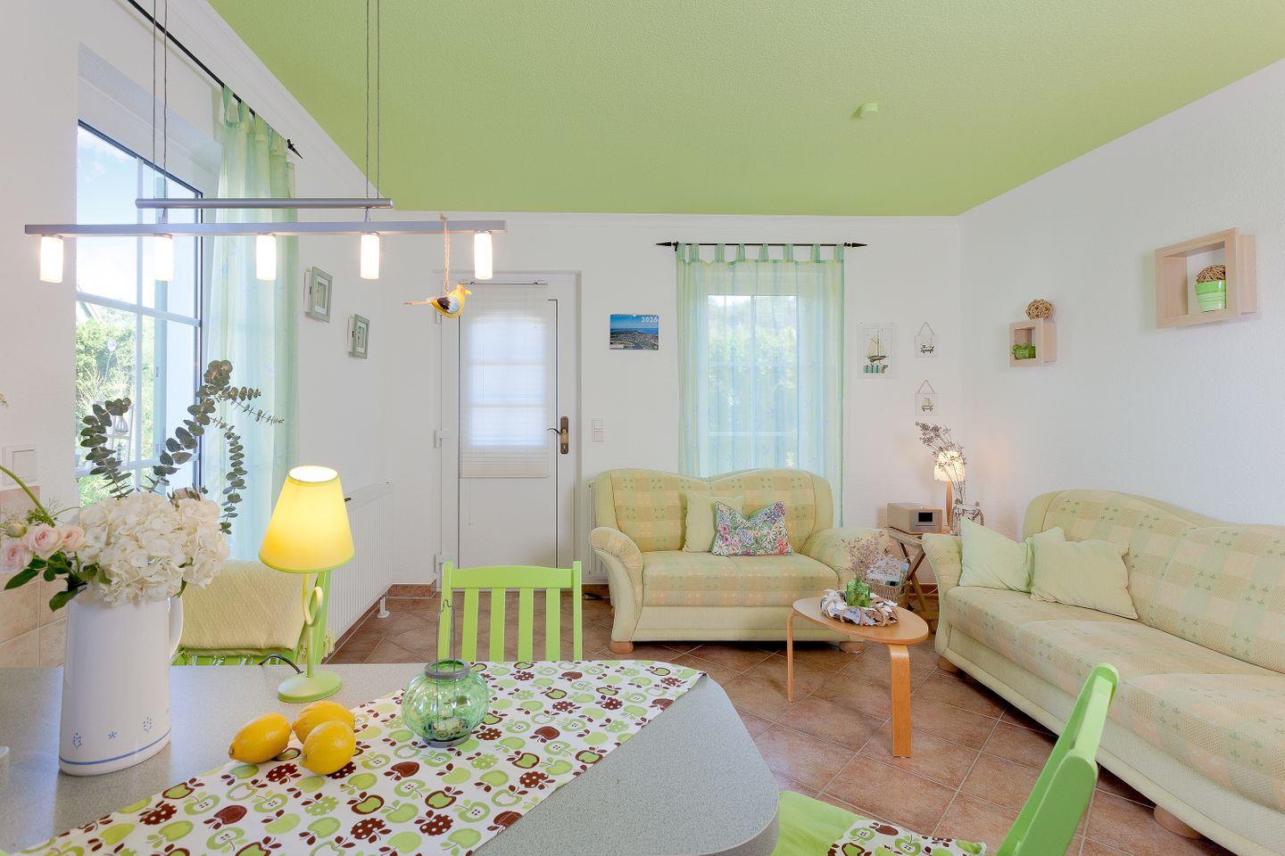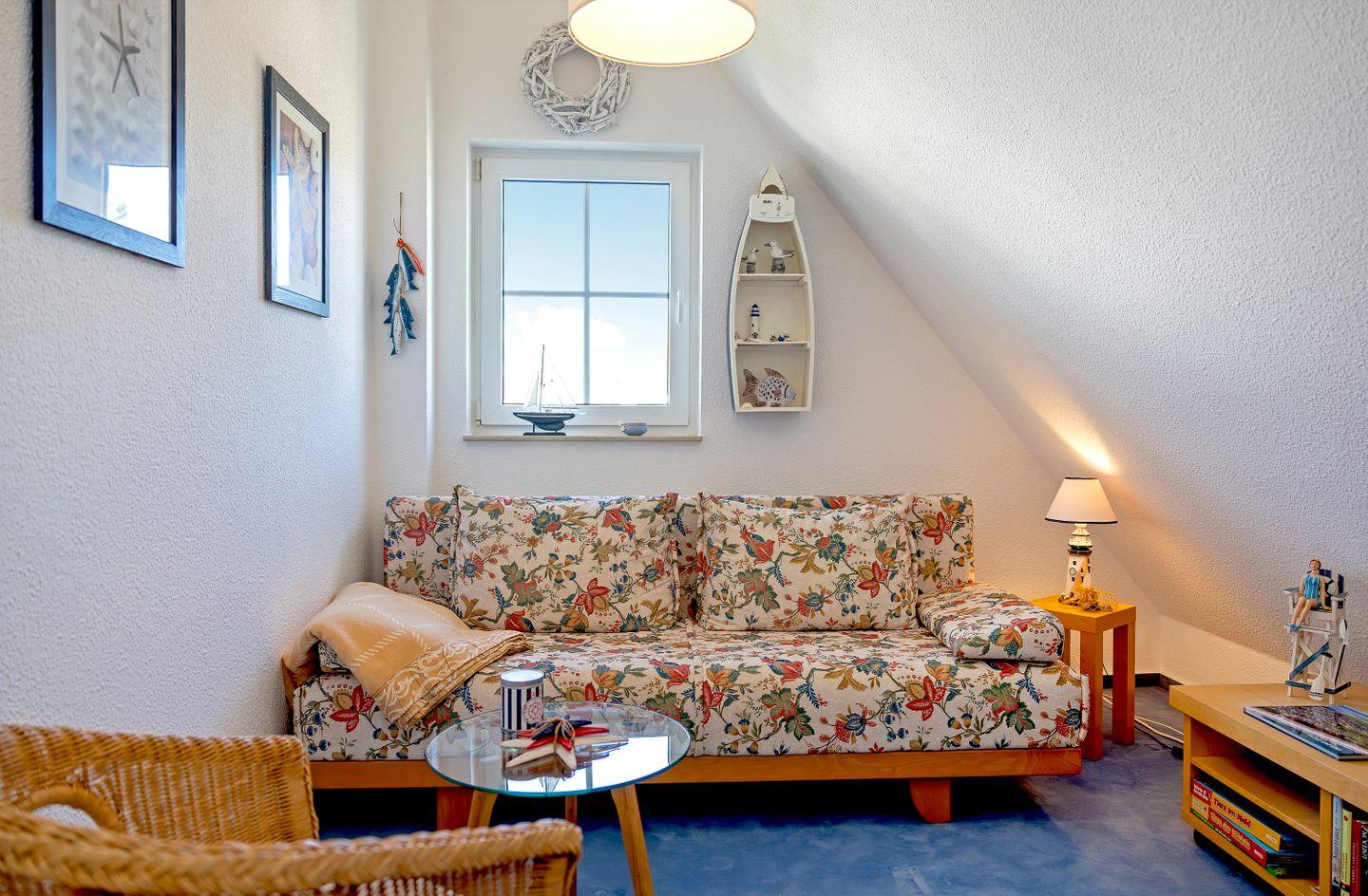 Die Ferienwohnung ist Teil eines ruhig gelegenen Hauses mit insgesamt drei Etagen und verfügt über ein separates Schlafzimmer mit Laminatboden, das mit zwei Schlafmöglichkeiten ausgestattet ist. Das helle Wohnzimmer bietet dank komfortabler Sofaecke und einem zusätzlichen Sessel einen angenehmen Rückzugsort zum Entspannen und Verweilen. Ein Essbereich mit Esstisch fördert gesellige Mahlzeiten und gemeinsame Momente. In der Ferienwohnung finden Sie einen Fernseher (bis 24 Zoll) mit Kabelanschluss, einen DVD- und Blu-ray-Spieler sowie einen CD-Spieler und ein Radio, sodass für unterschiedliche Unterhaltungswünsche gesorgt ist. Zusätzlich stehen Bücher und Spiele zur Verfügung, sodass auch bei weniger gutem Wetter für Abwechslung gesorgt ist.