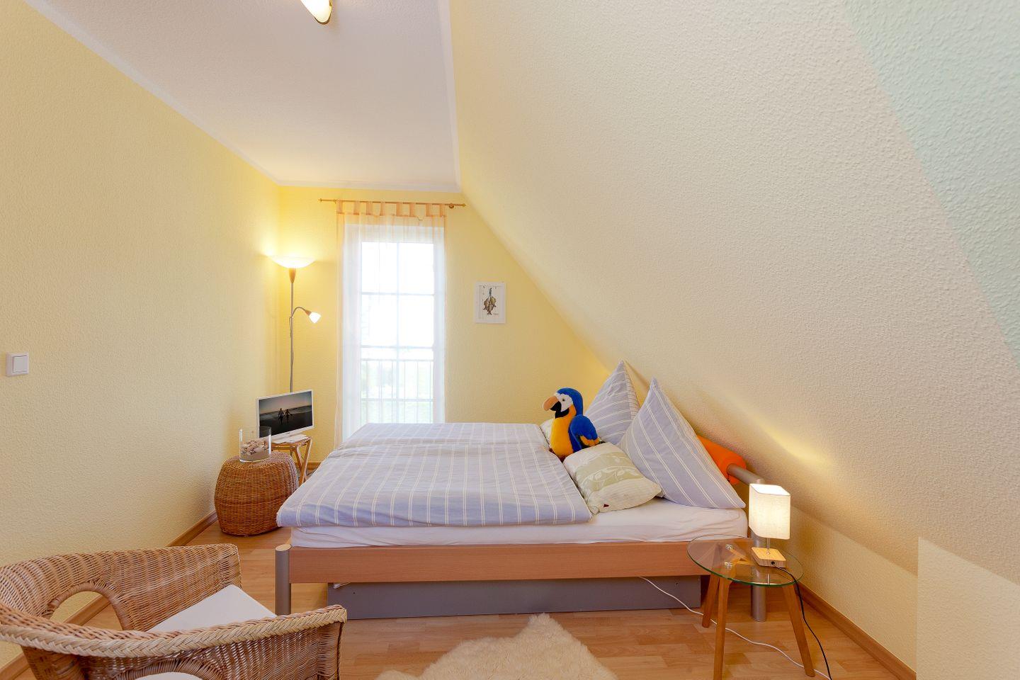 1. OG Schlafzimmer mit Doppelbett (2 Einzelmatratzen)und Bad mit Dusche/WC