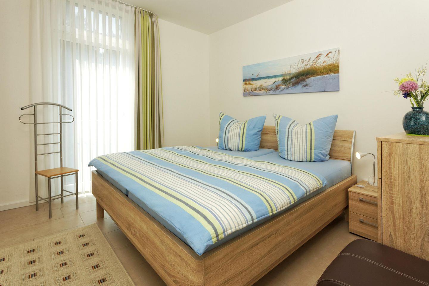 Die beiden Schlafzimmer verfügen jeweils über einen Fliesenboden und bieten insgesamt vier Schlafmöglichkeiten. Viel Stauraum bieten Kommoden und ein offenes Raumkonzept. Damit auch kleine Gäste willkommen sind, ist die Wohnung kinder- und babygerecht eingerichtet. Familienfreundliche Extras wie ein Hochstuhl, Bollerwagen sowie die generelle Kinderfreundlichkeit schaffen ideale Voraussetzungen für einen entspannten Urlaub mit Kindern.
