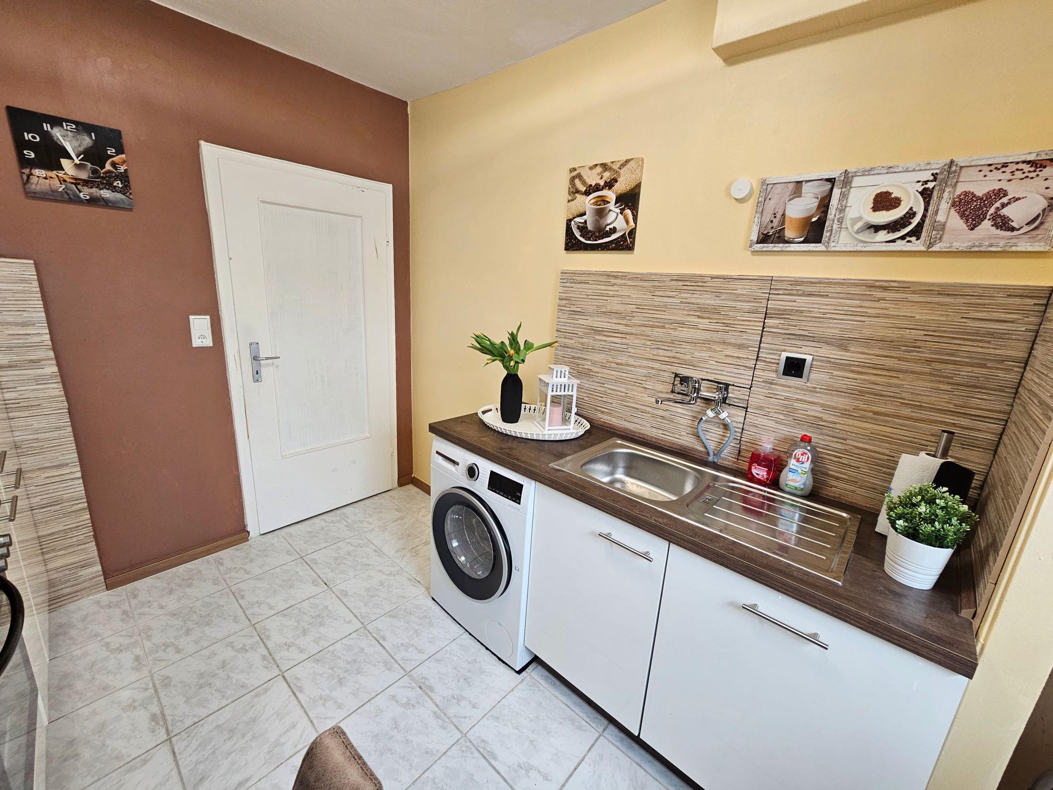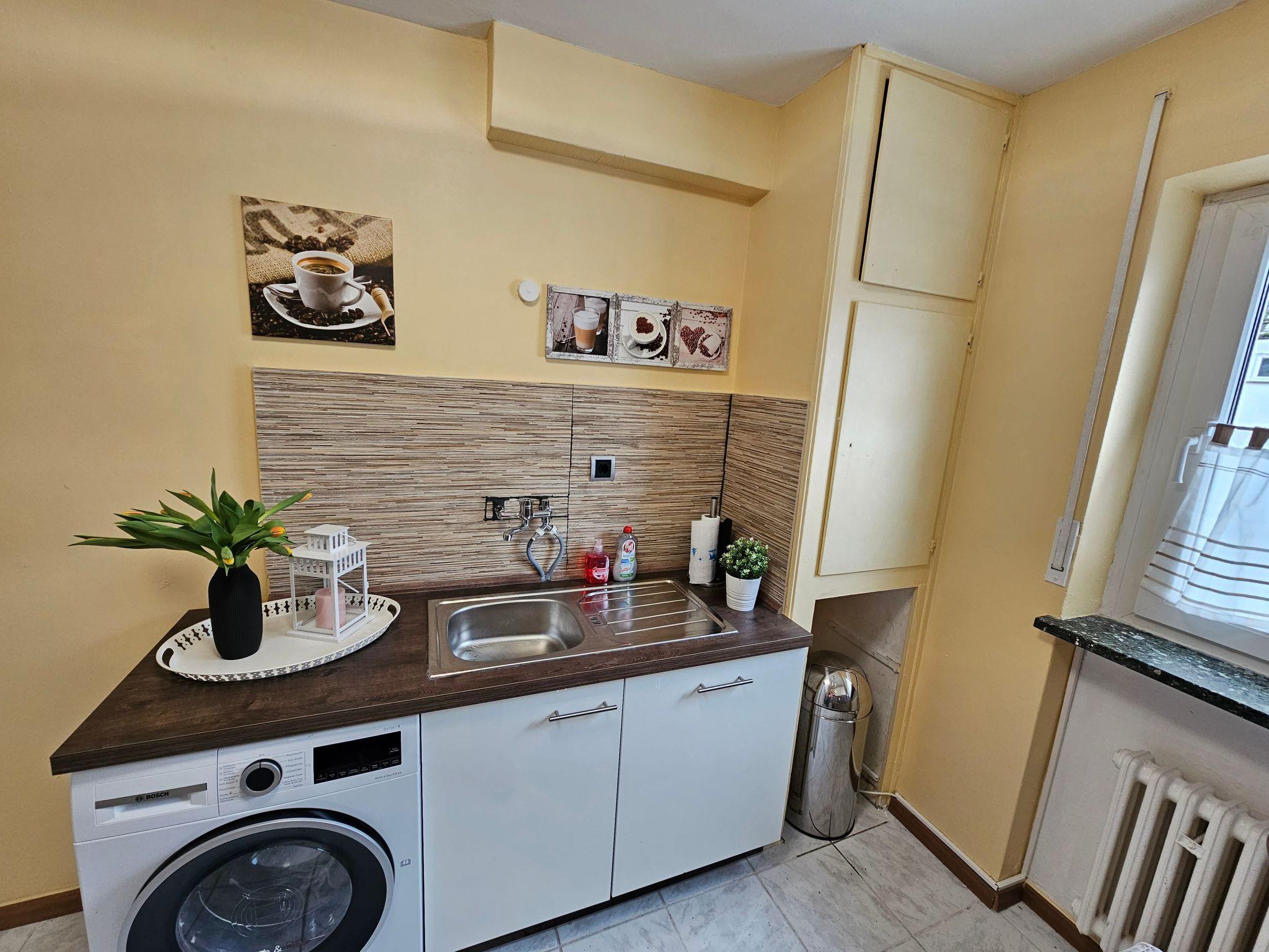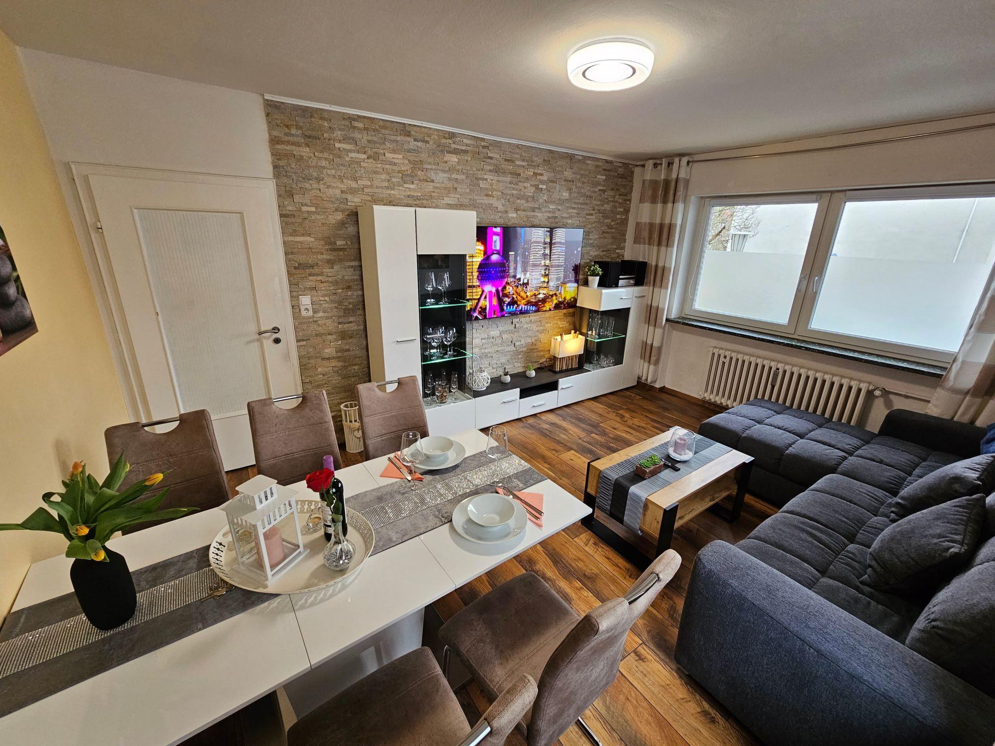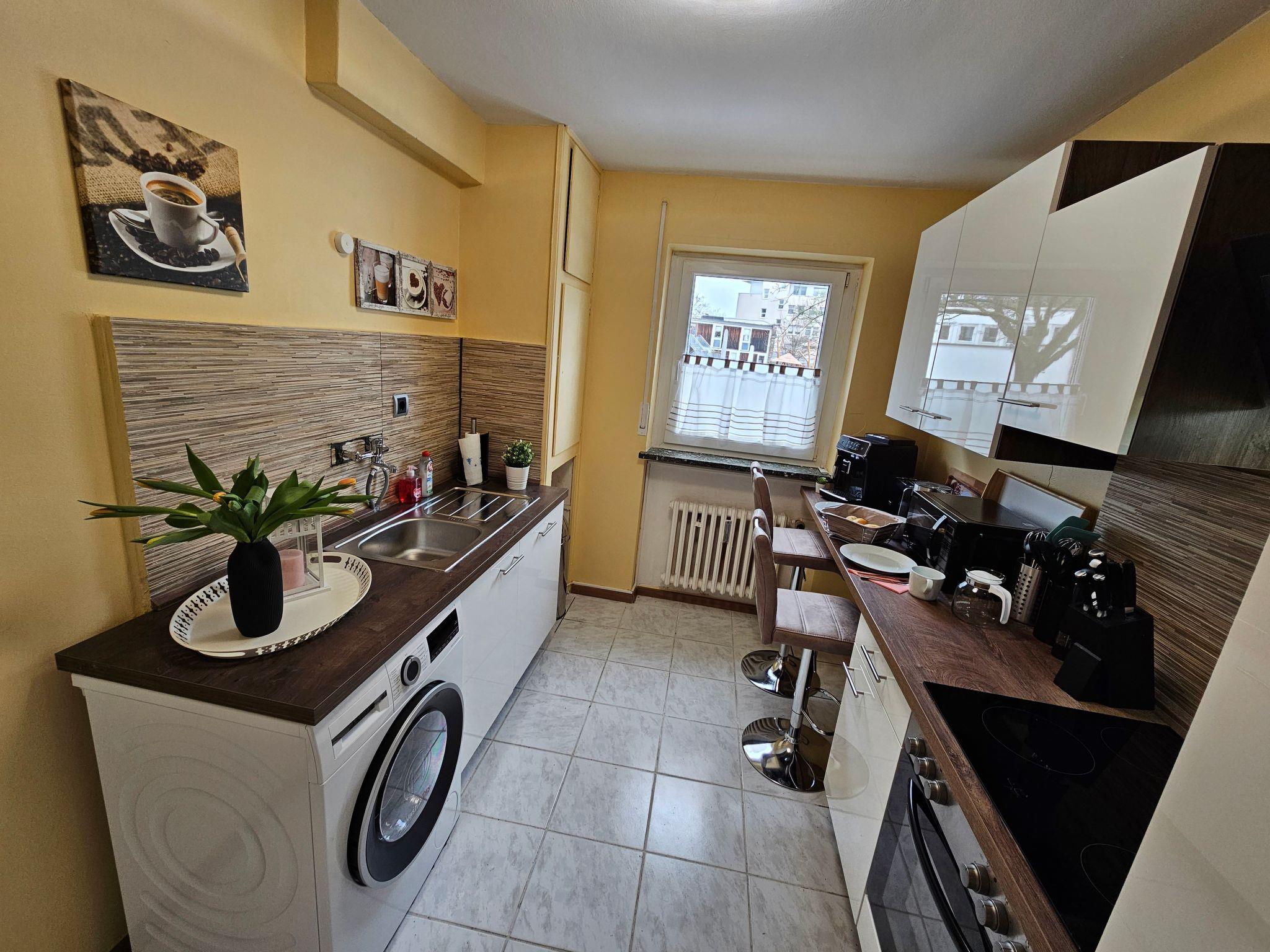 Bright and modern apartment on the ground floor, very close to the centre and to the university, 1 Gbit internet via fibre optics, dishwasher, washing machine with integrated tumble dryer, high quality box spring beds, sofa bed with very good mattress and topper, 3 TVs with cable connection, fully equipped kitchen with oven, ceramic hob, coffee machine, toaster, kettle, microwave