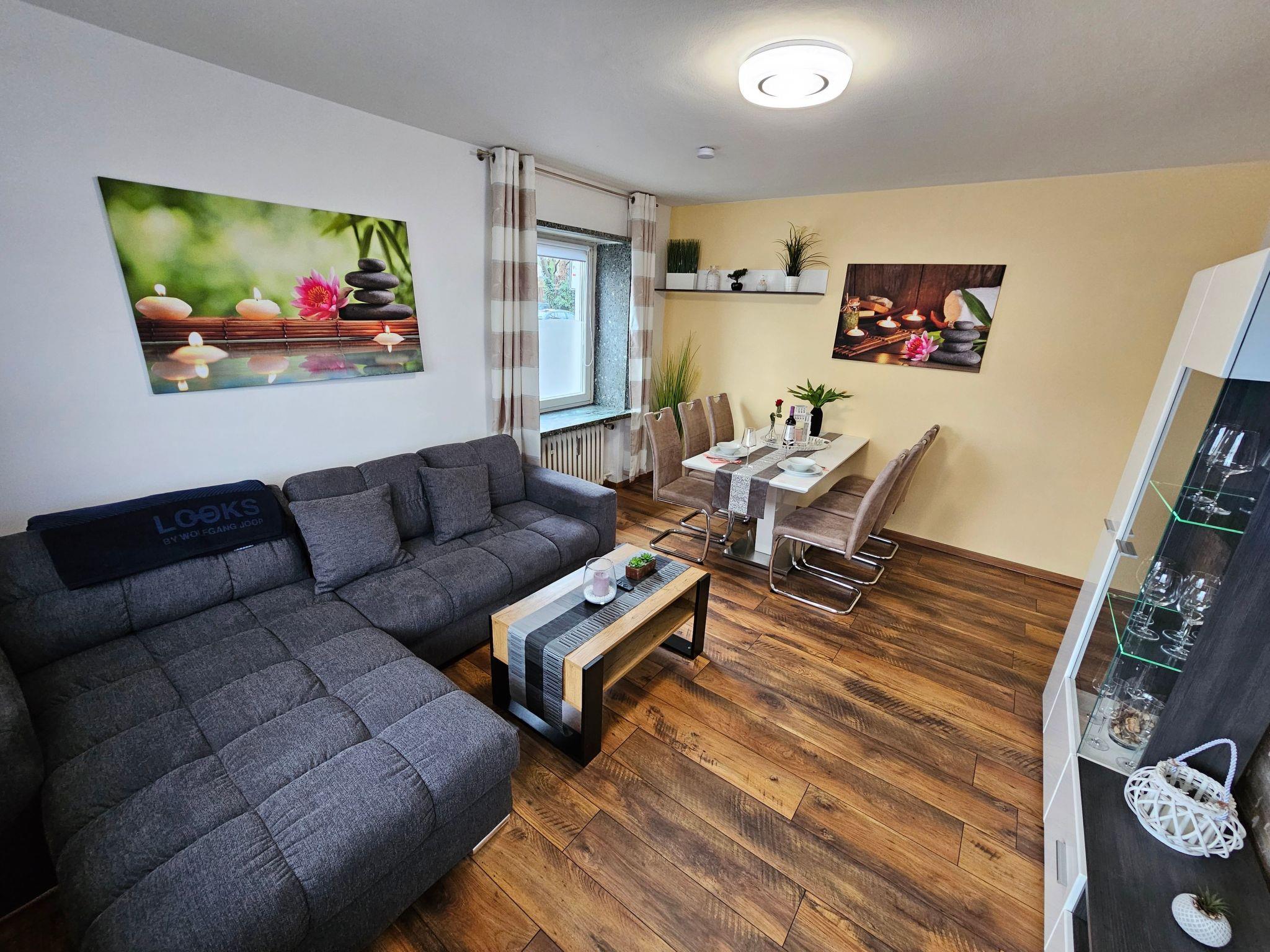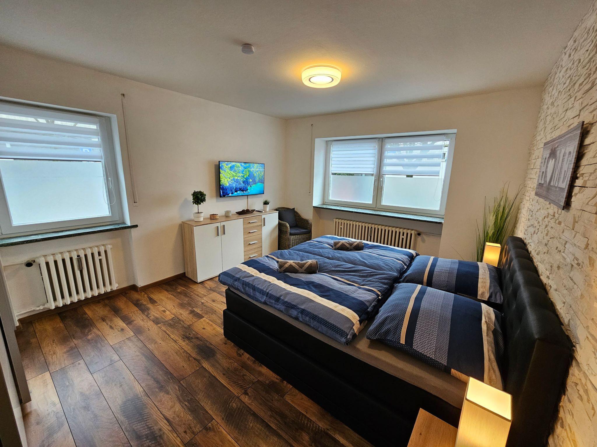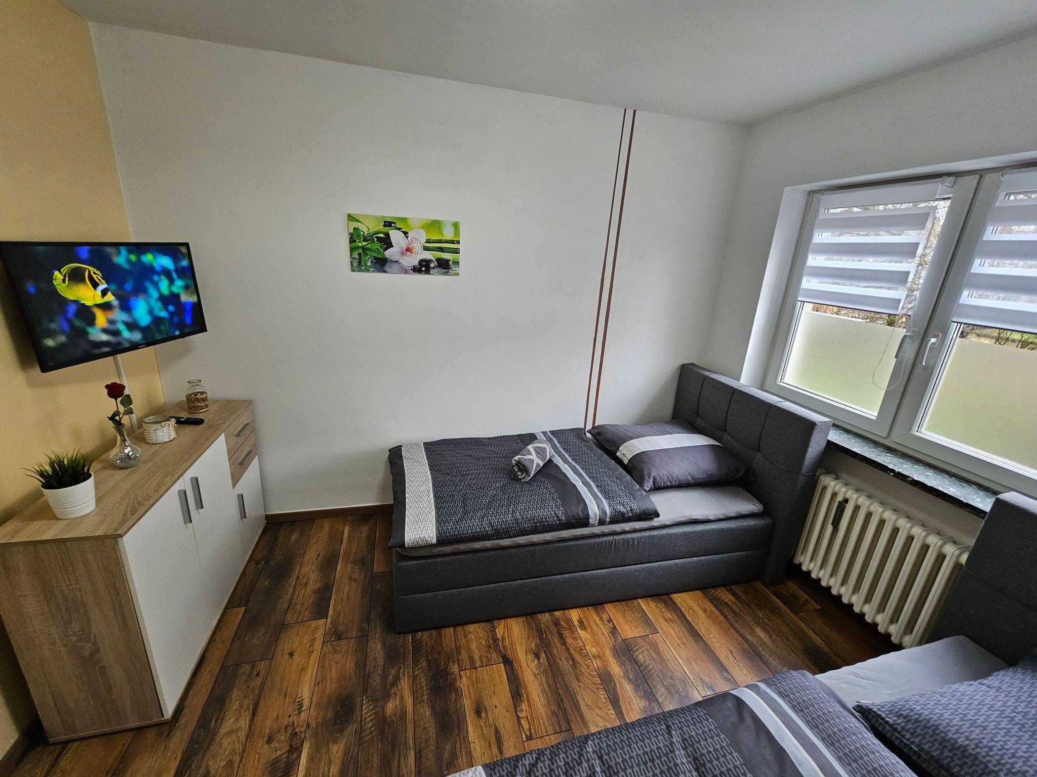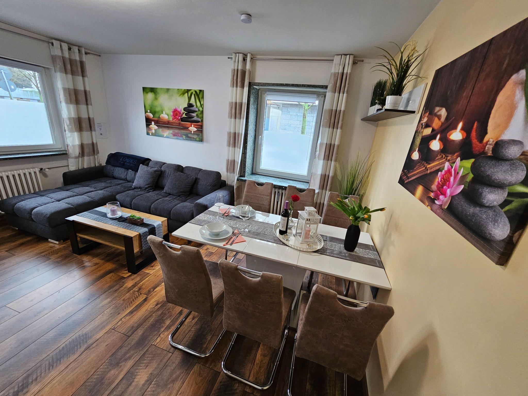 Bright and modern apartment on the ground floor, very close to the centre and to the university, 1 Gbit internet via fibre optics, dishwasher, washing machine with integrated tumble dryer, high quality box spring beds, sofa bed with very good mattress and topper, 3 TVs with cable connection, fully equipped kitchen with oven, ceramic hob, coffee machine, toaster, kettle, microwave