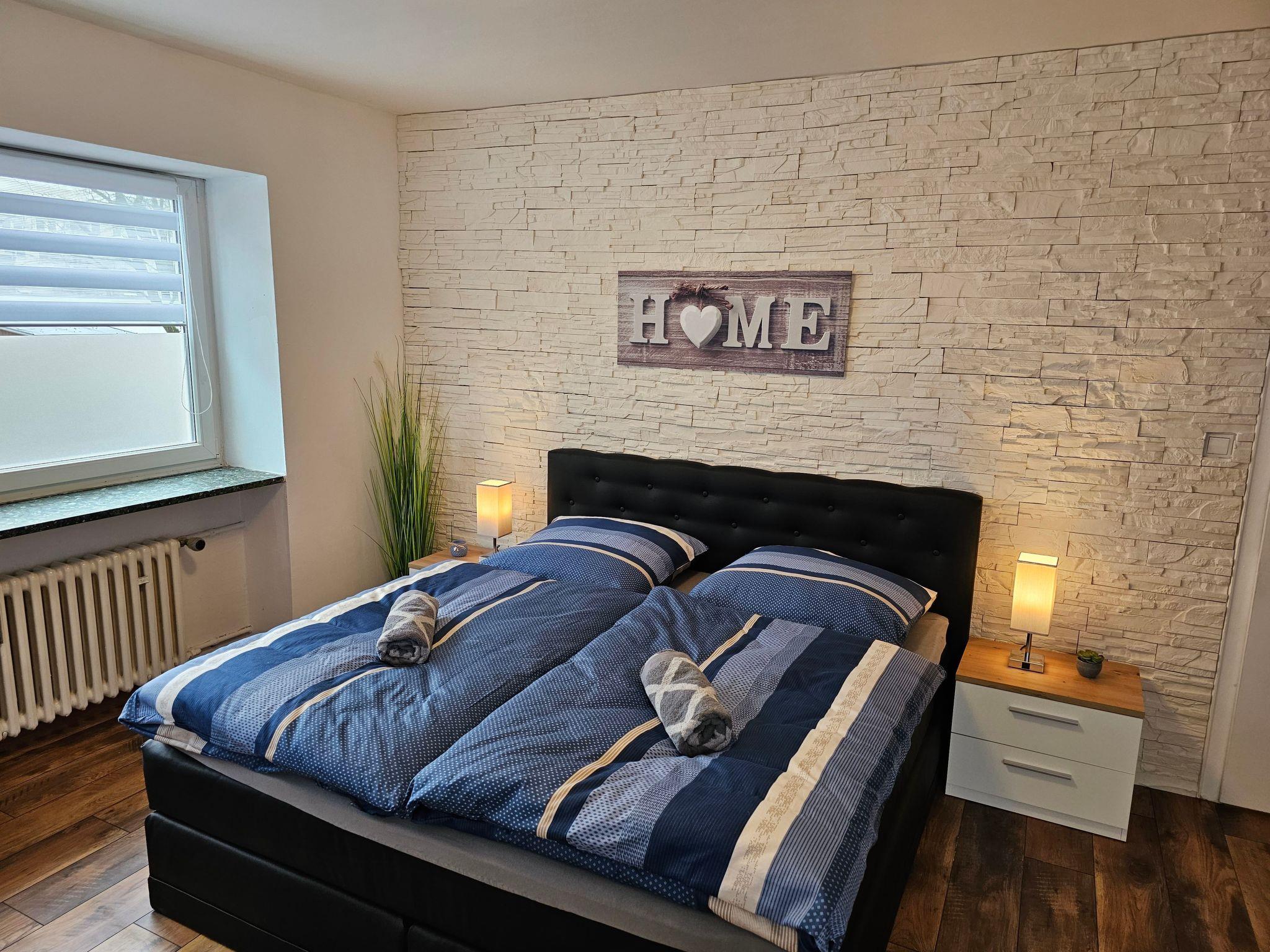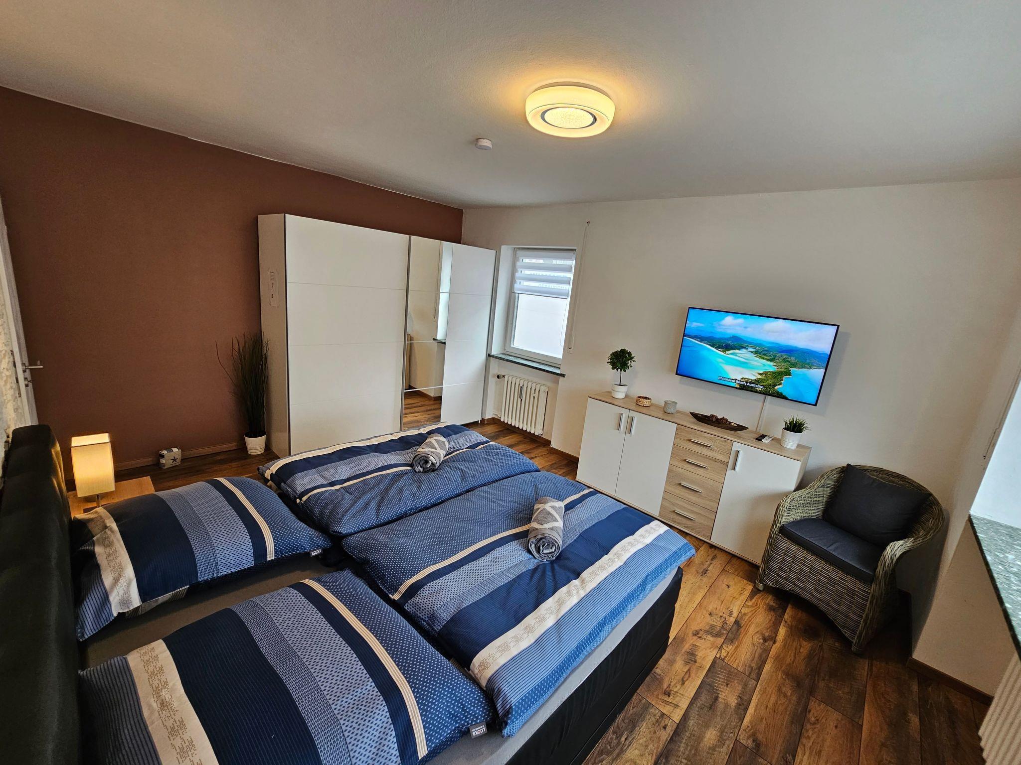 In the living area, a natural stone wall provides a stylish ambience. The smart TV has numerous apps (Netflix, Amazon Prime, Disney Plus, RTL+, YouTube, etc.). The two bedrooms also have their own TV with the same apps, so that even in a large family there is no need to argue about the TV programme: )