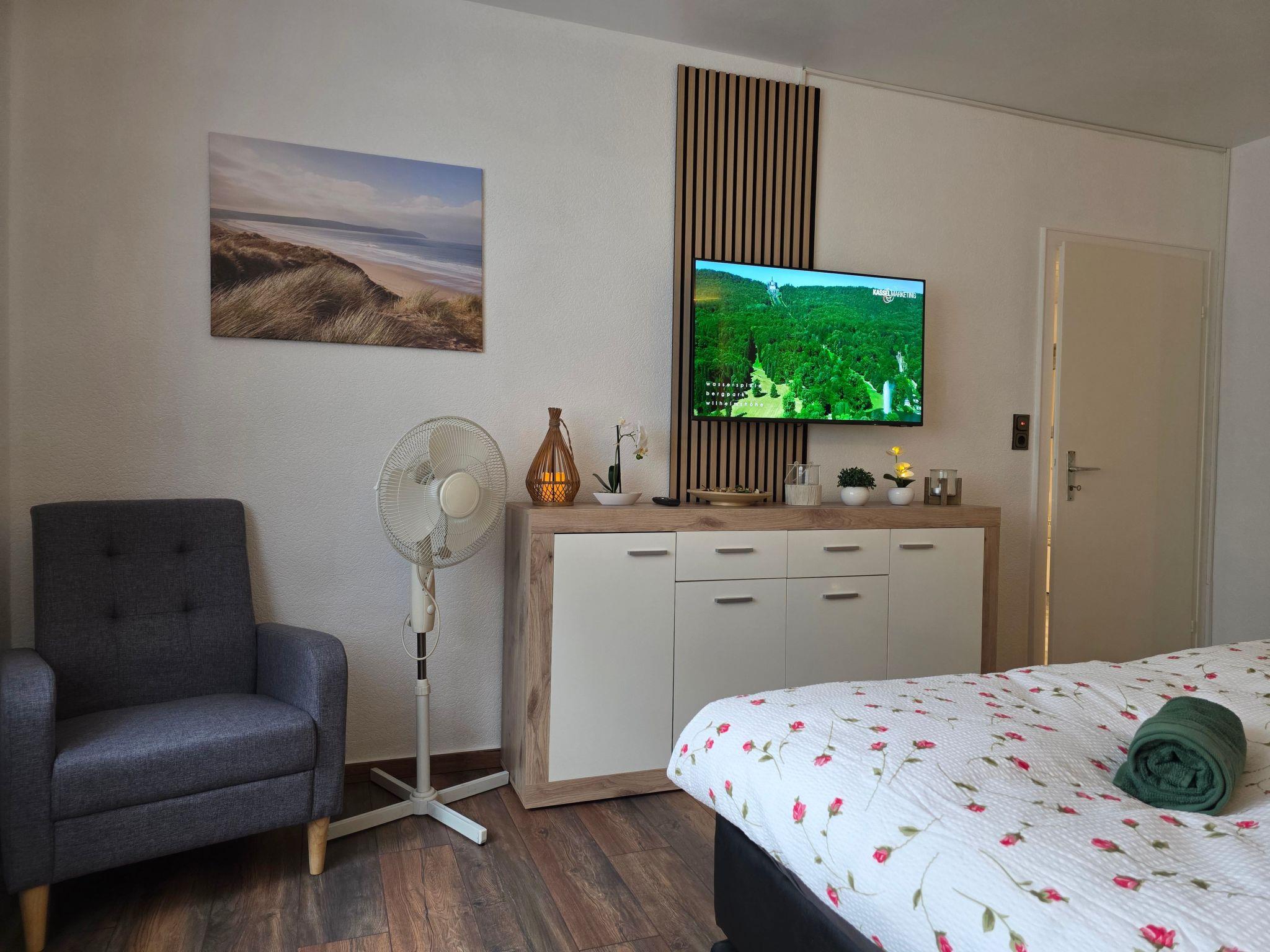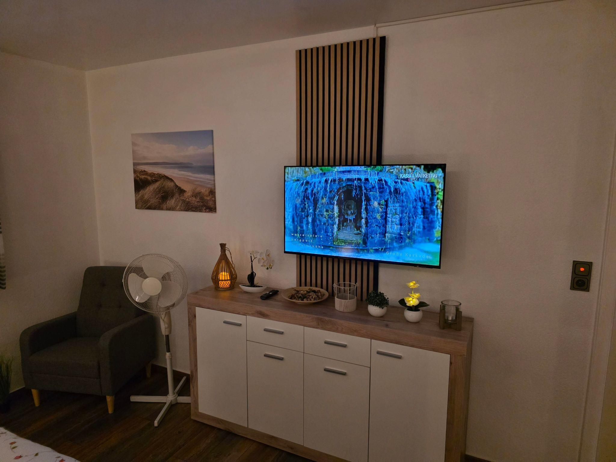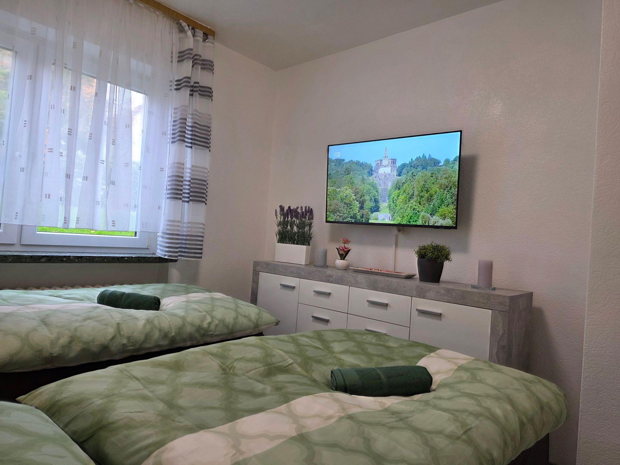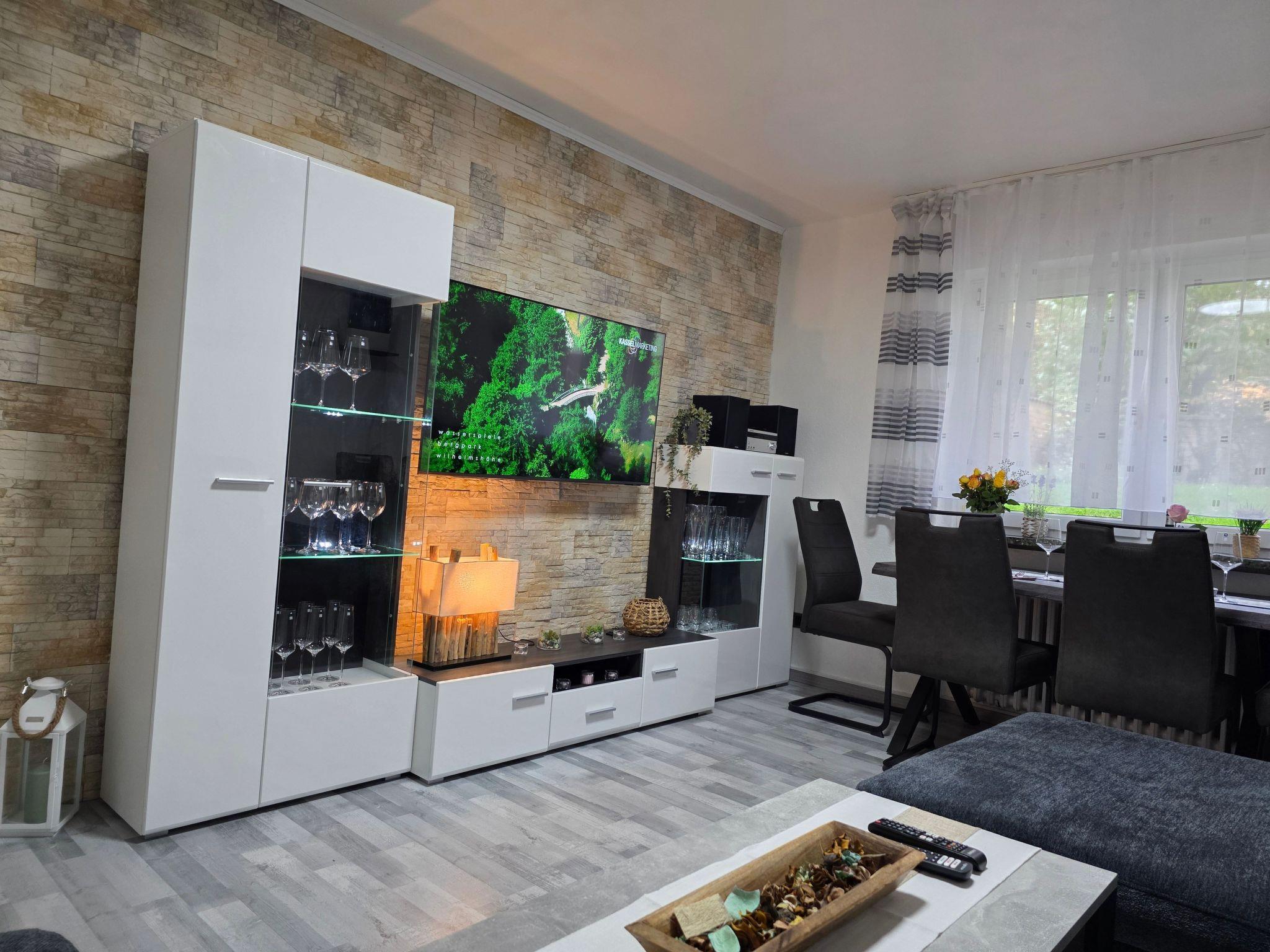 A natural stone wall in the living area creates a stylish ambience. The smart TV has numerous apps (Netflix, Amazon Prime, Disney Plus, RTL+, YouTube, etc.). The two bedrooms also have their own TV with the same apps so that there is no need to argue about the TV programme even in a large family: )