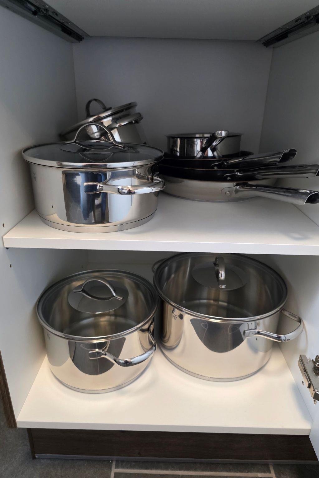 The sofa bed in the living area is available for a further 2 people and can be folded down in a few simple steps. This sofa also has a high-quality pocket spring mattress and an additional topper can be placed on top.