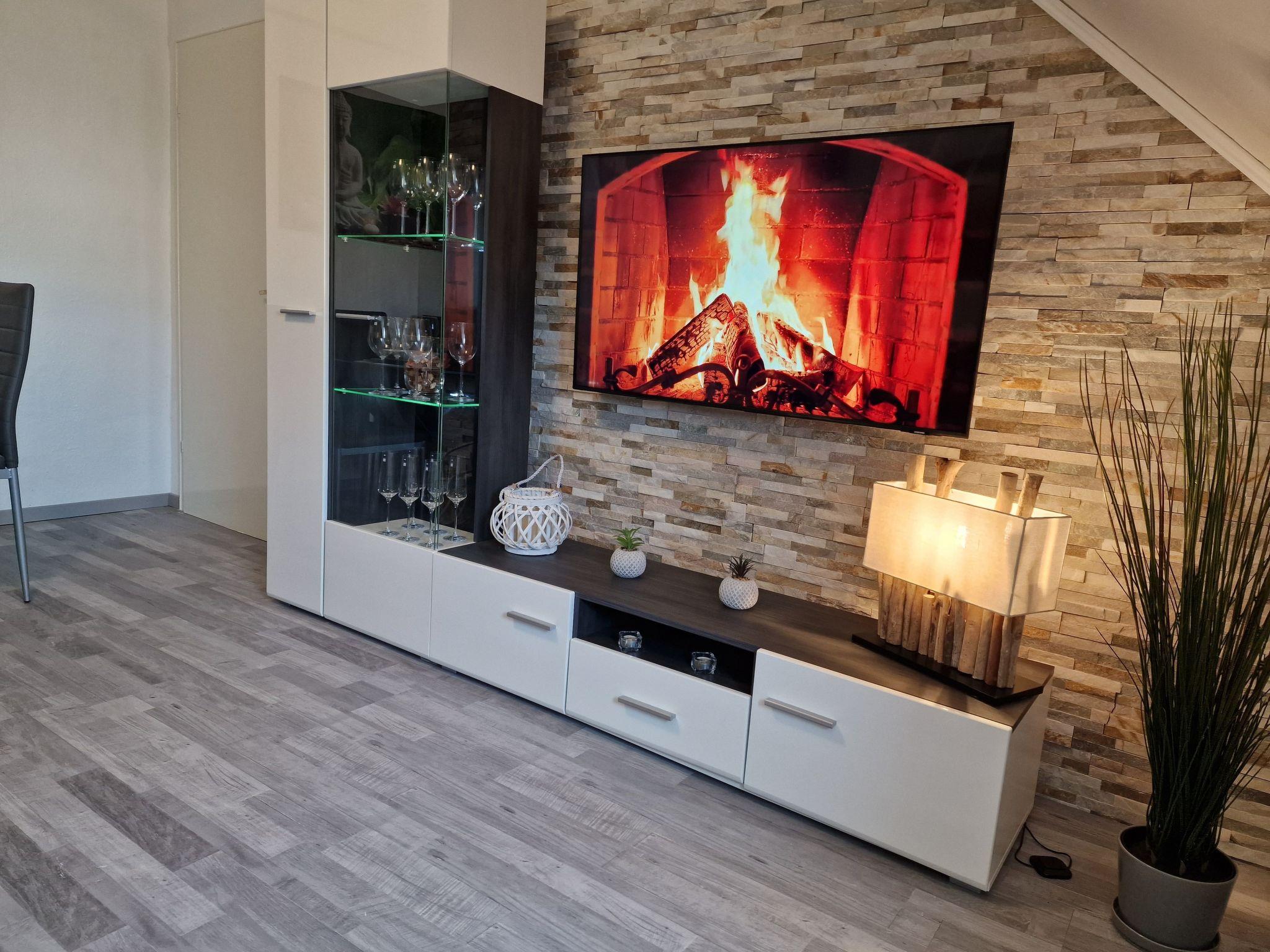 In the living area, a natural stone wall provides a stylish ambience. The smart TV has numerous apps (Netflix, Amazon Prime, Disney Plus, RTL+, YouTube, etc.). The two bedrooms also have their own TV with the same apps, so that even in a large family there is no need to argue about the TV programme: )