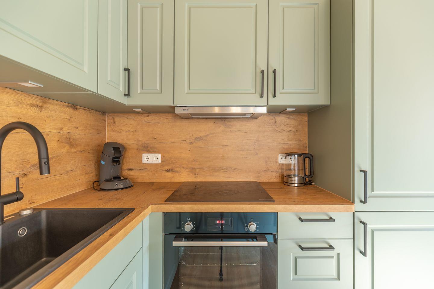 Die offene Küche ist voll ausgestattet mit Induktionskochfeld, Backofen, Mikrowelle, Spülmaschine, Senseo-Kaffeemaschine und Kühlschrank mit Gefrierfach – perfekt für gemeinsame Kochabende. Im gemütlichen Wohnbereich laden eine Sofaecke und ein SMART-Fernseher zum Verweilen ein. Kostenloses, schnelles WLAN hält Sie jederzeit online. Der angrenzende Essbereich bietet ausreichend Platz für alle Gäste.