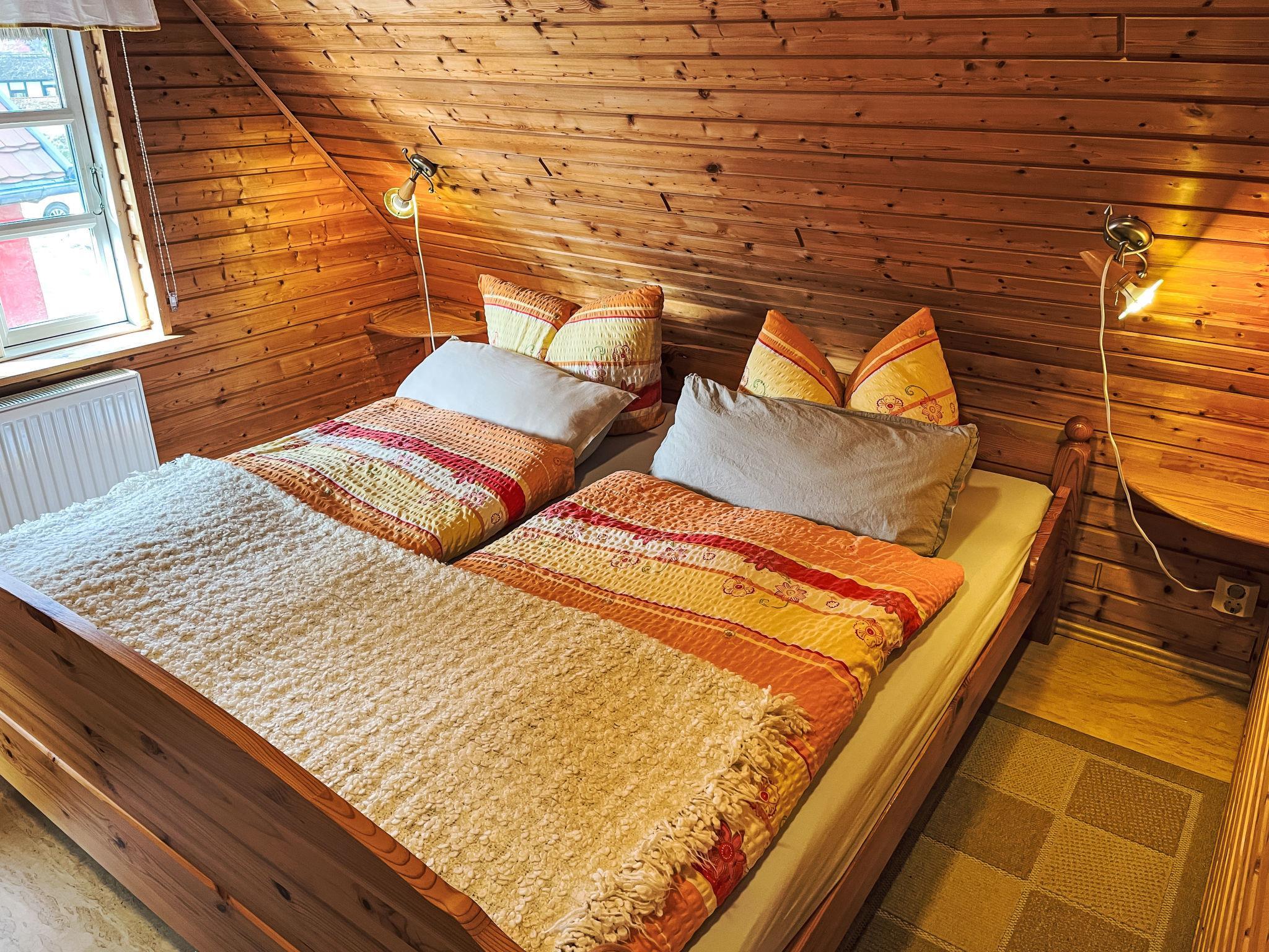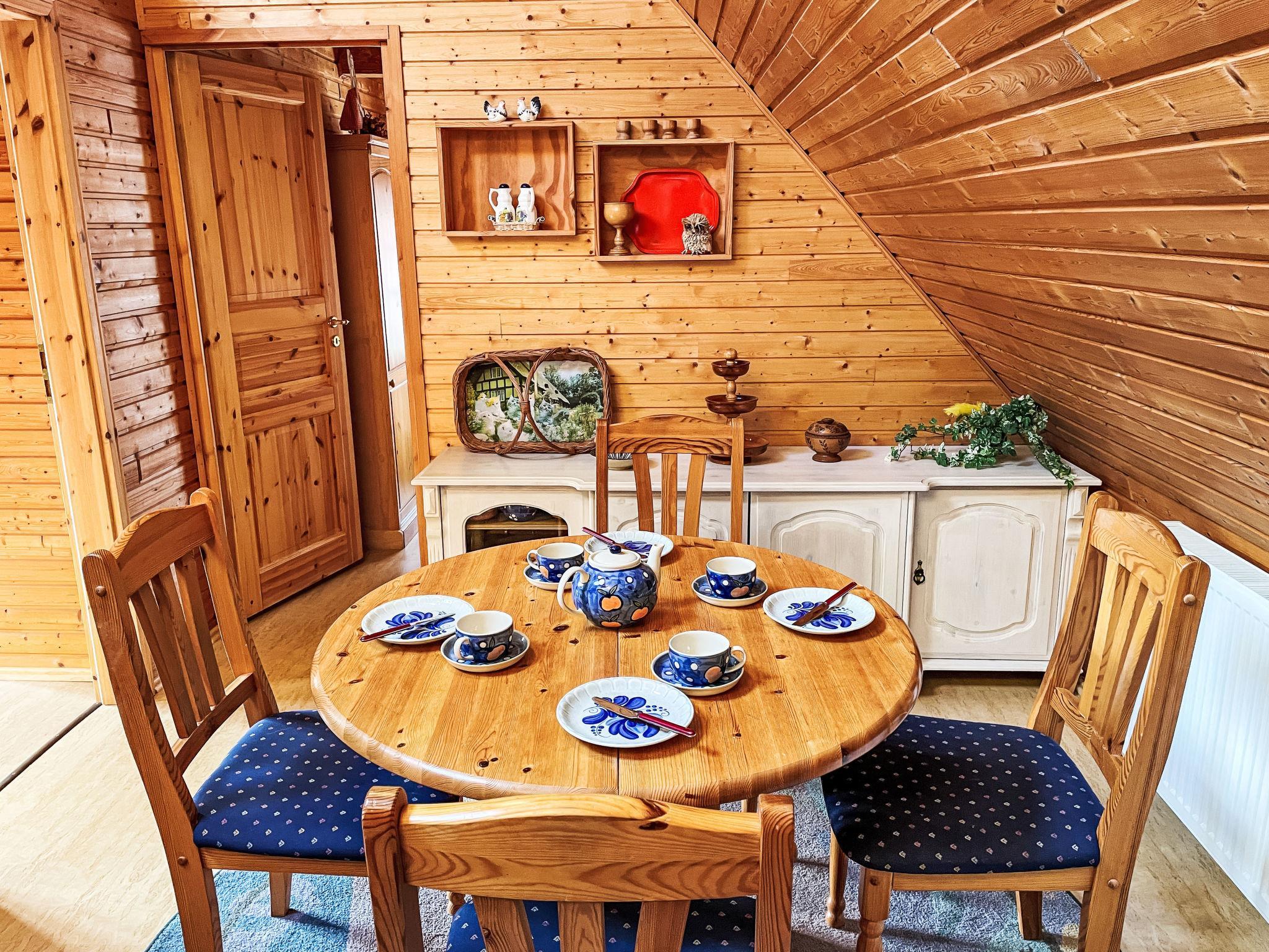 "Brigitte", 3-room apartment 65 m2, on the upper floor. Practical and wooden furniture furnishings: upper floor: living room with sloping ceilings with satellite TV (flat screen), radio. 1 double bedroom with sloping ceilings. 1 room with sloping ceilings with 2 beds. With sloping ceilings kitchen (2 hot plates, mini-oven, toaster, kettle, microwave) with dining table. Shower/WC. Gas heating. Patio. Barbecue (portable). Facilities: baby cot. Parking (2 cars). Please note: non-smokers only. Smoke alarm. Musicians are welcome in this house with their instruments.