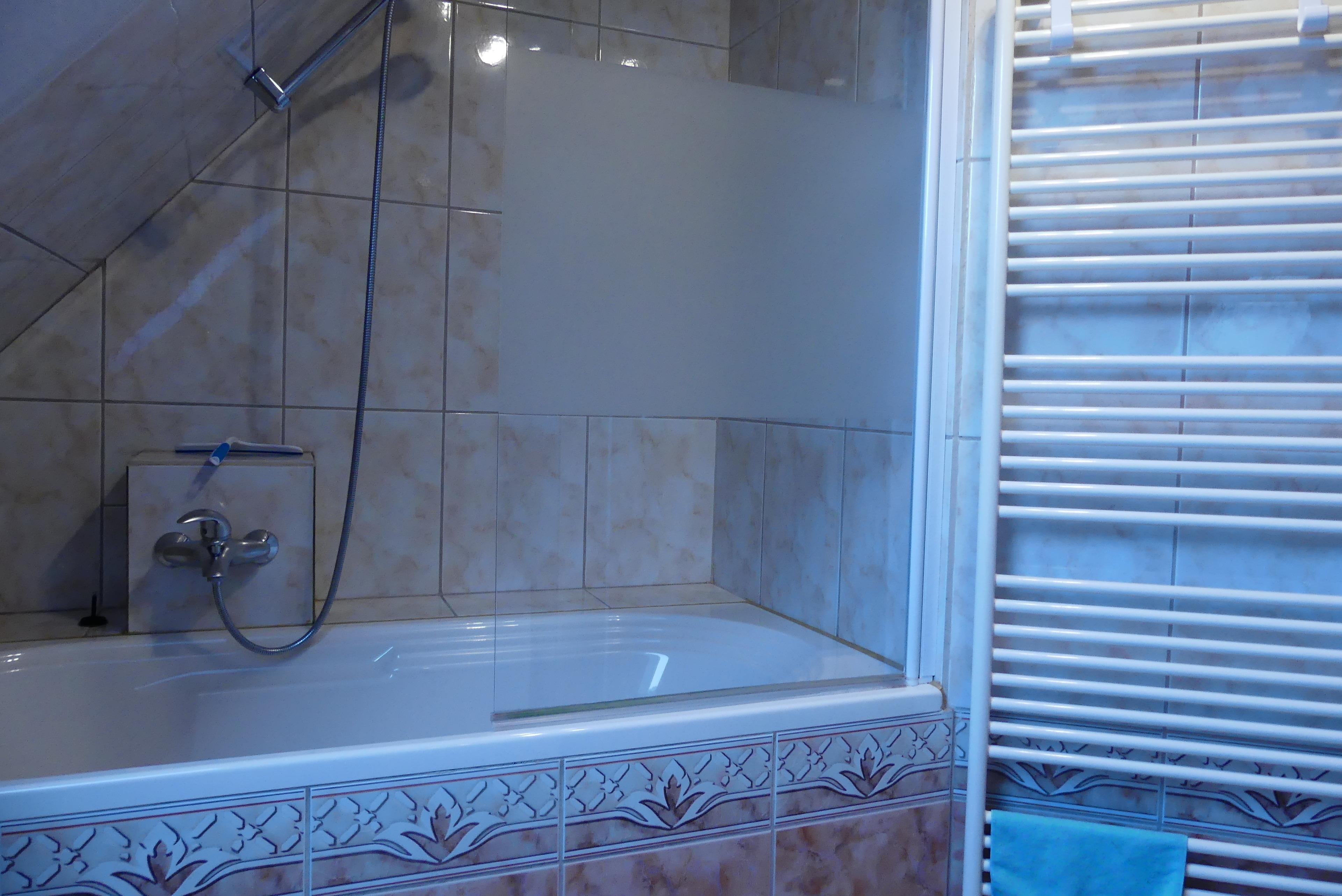 Badeværelse med bruser og badekar