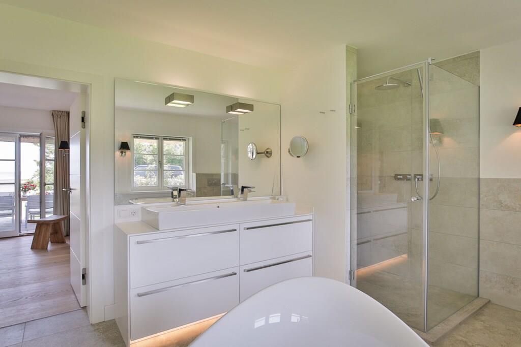 Urlaub in einem exklusiv eingerichteten, freistehenden Reetdachhaus in Keitum auf Sylt mit uneingeschränktem Wattblick - das erwartet Sie im Ferienhaus „Pequod“! Im 280 qm² großen Haus befinden sich auf drei Etagen insgesamt fünf Schlafzimmer, fünf Badezimmer, ein Wellnessbereich im Souterrain sowie ein großzügiges Wohnzimmer mit offener Küche und uneingeschränkten Wattblick. Die zwei vom Wohnzimmer zu erreichenden Außenterrassen laden zum Verweilen unter freien Himmel ein. Im Erdgeschoss werden Sie von einem hellen Flur empfangen, von dem das Wohnzimmer sowie zwei Schlafzimmer mit direkt angrenzenden Badezimmer zu erreichen sind. Im ersten Obergeschoss ist eine weitere Schlafmöglichkeit für zwei Personen, ein vollausgestattetes Badezimmer und das Masterschlafzimmer zu finden. Letzteres weist neben einem hochwertig ausgestatteten Bad en suite und einem King-Size-Bett eine freistehende Badewanne vor, von der aus ebenfalls der traumhafte Blick über das Meer zu genießen ist. Im Souterrain erwartet Sie ein Wellnessbereich, bestehend aus einer Sauna und einem Schlafbereich für zwei Personen.