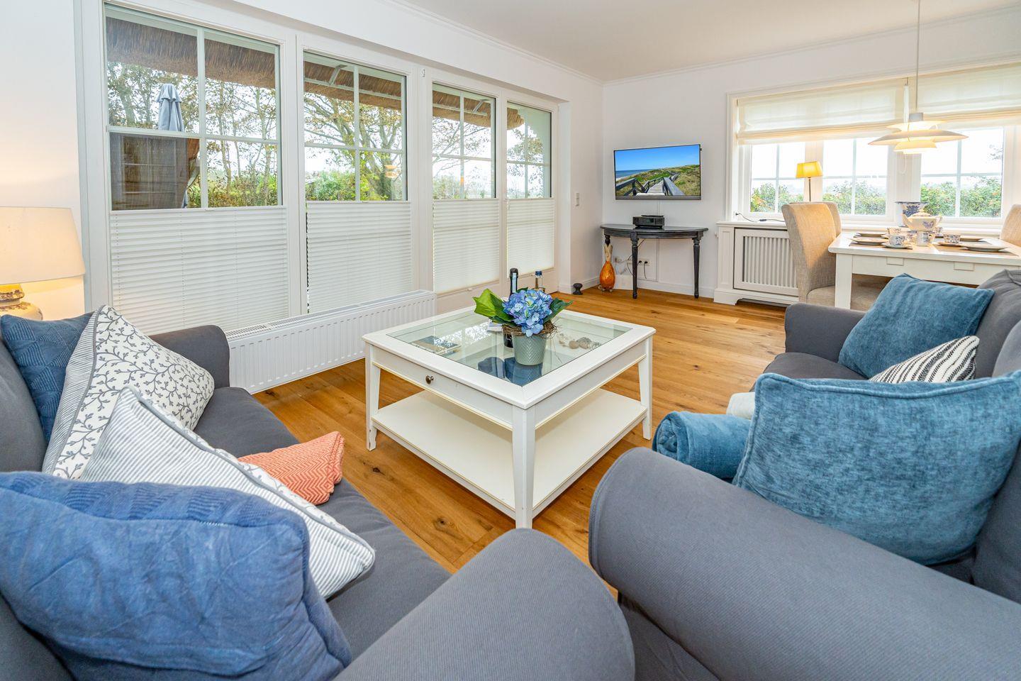 Die Ferienhaushälfte ist unter Reet gelegen und verfügt über eine gemütliche und hochwertige Ausstattung, sowie eine Terrasse mit Garten. Keitum ist ein charmantes, idyllisches Dorf, das mit seinem historischen Flair begeistert.