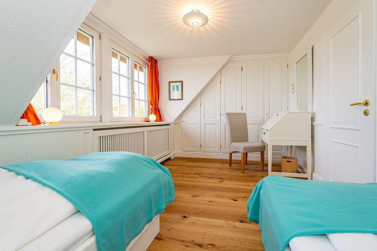 Durch die Eingangstür gelangt man in einen Flur über den die Küche, ein Gäste- WC und das Wohnzimmer mit Essbereich erreichbar sind. Die Küche verfügt über ein Ceranfeld und einen Backofen, sowie eine Geschirrspülmaschine. Das Wohnzimmer ist hell eingerichtet und ist mit einem Mylin Kachelofen ausgestattet. Vom Wohnzimmer aus gelangt man in den großzügigen und wunderschönen angelegten Garten mit Terrasse, die über einen Strandkorb (saisonal) verfügt. Über eine Treppe gelangen Sie in das 1. OG, wo sich die Schlafzimmer und das Duschbad befinden. Ein Schlafzimmer verfügt über ein Doppelbett (180x200), das andere über zwei Einzelbetten (2x 90x200).