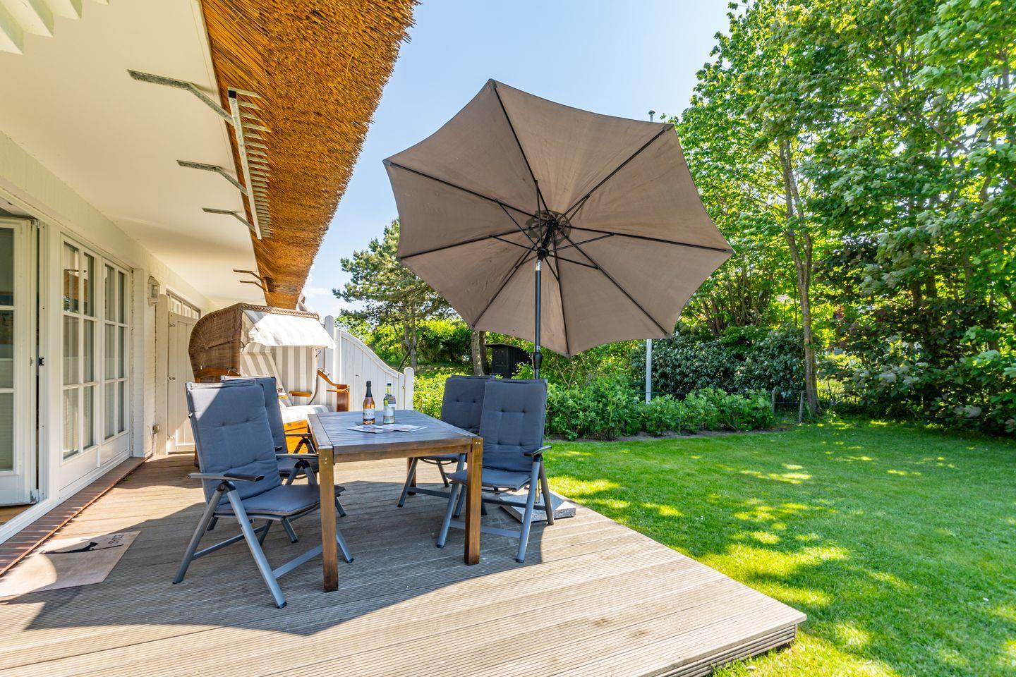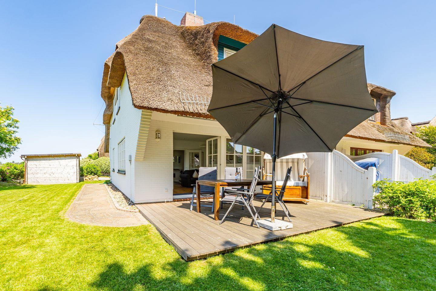 Unter Reet gebautes Ferienhausteil in Keitum, mit Garten für bis zu 4 Personen.