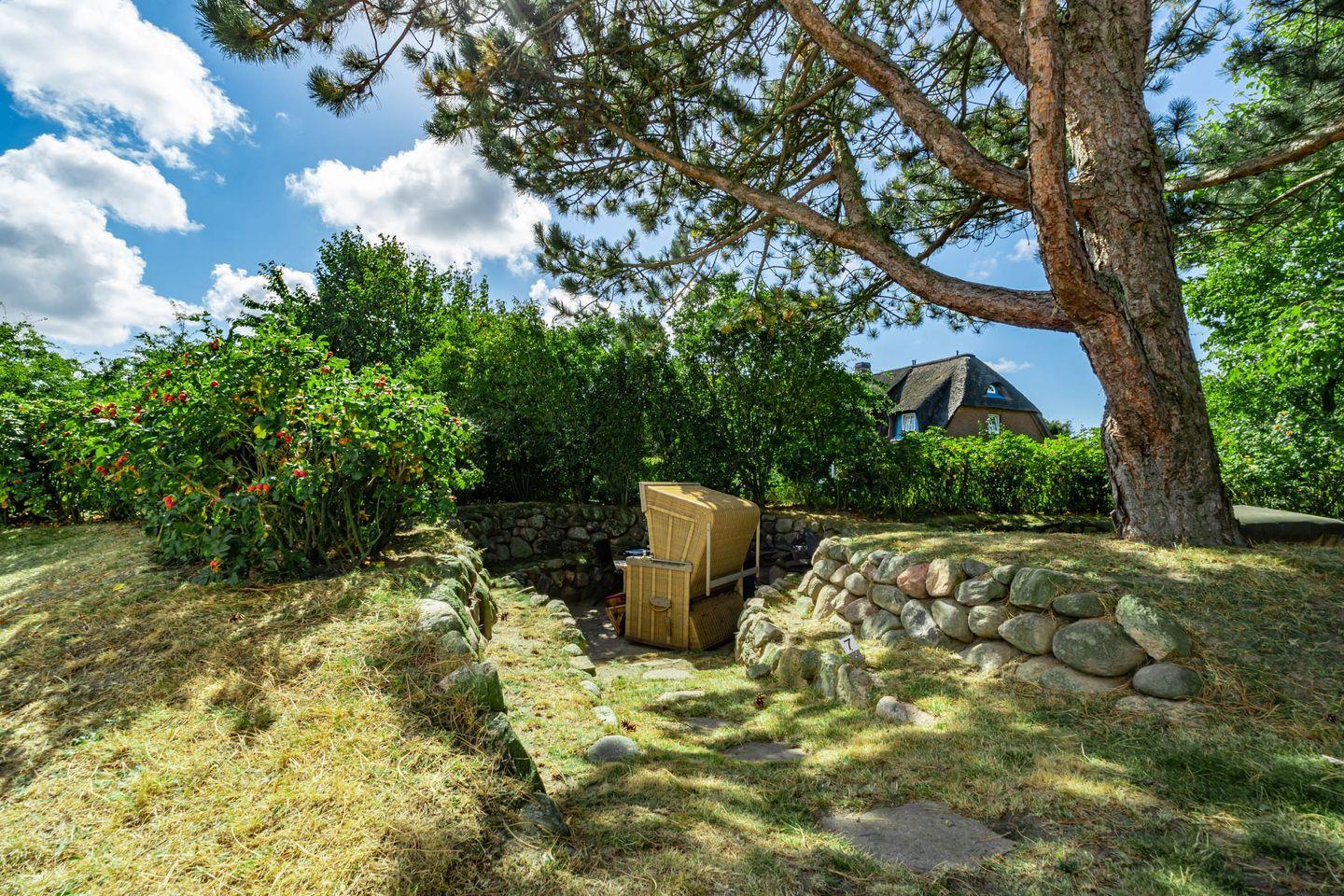 Ferienwohnung unter Reet für bis zu 4 Personen mit Sonnenkuhle.