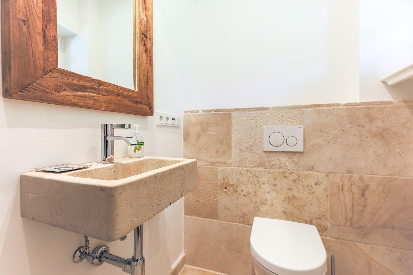 Ebenfalls dreimal vorhanden: die Badezimmer (eins im Obergeschoss, eins im Souterrain sowie ein Gäste-WC), die wie ein modernes Spa gestaltet wurden, das zum Entspannen und Verweilen einlädt. Mit beigem Naturstein und weißer Geradlinigkeit strahlt es auf eine und reduzierte Weise Eleganz aus - die Ausstattung mit Regenshower-Dusche verspricht Luxus pur. Ein weiteres Highlight im Souterrain ist die große Sauna mit Ruheraum inklusive Liegen. Ein absolutes Must für Wellness-Fans, dass das Sommerhaus auch in der kälteren Jahreszeit zu einem Wohlfühlort macht!