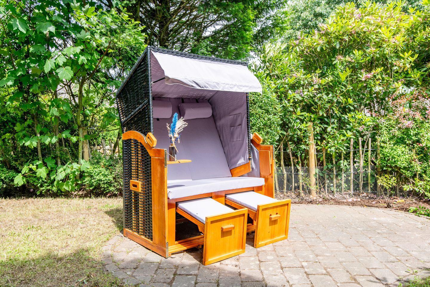 Der nach Süden ausgerichtete Gartenbereich und die sonnige Terrasse bieten Platz zum Verweilen und Genießen der Nordseeluft. Ein idealer Ort für Mahlzeiten im Freien, Sonnenbaden und gesellige Abende im Freien – umgeben von einer ruhigen und gepflegten Atmosphäre.